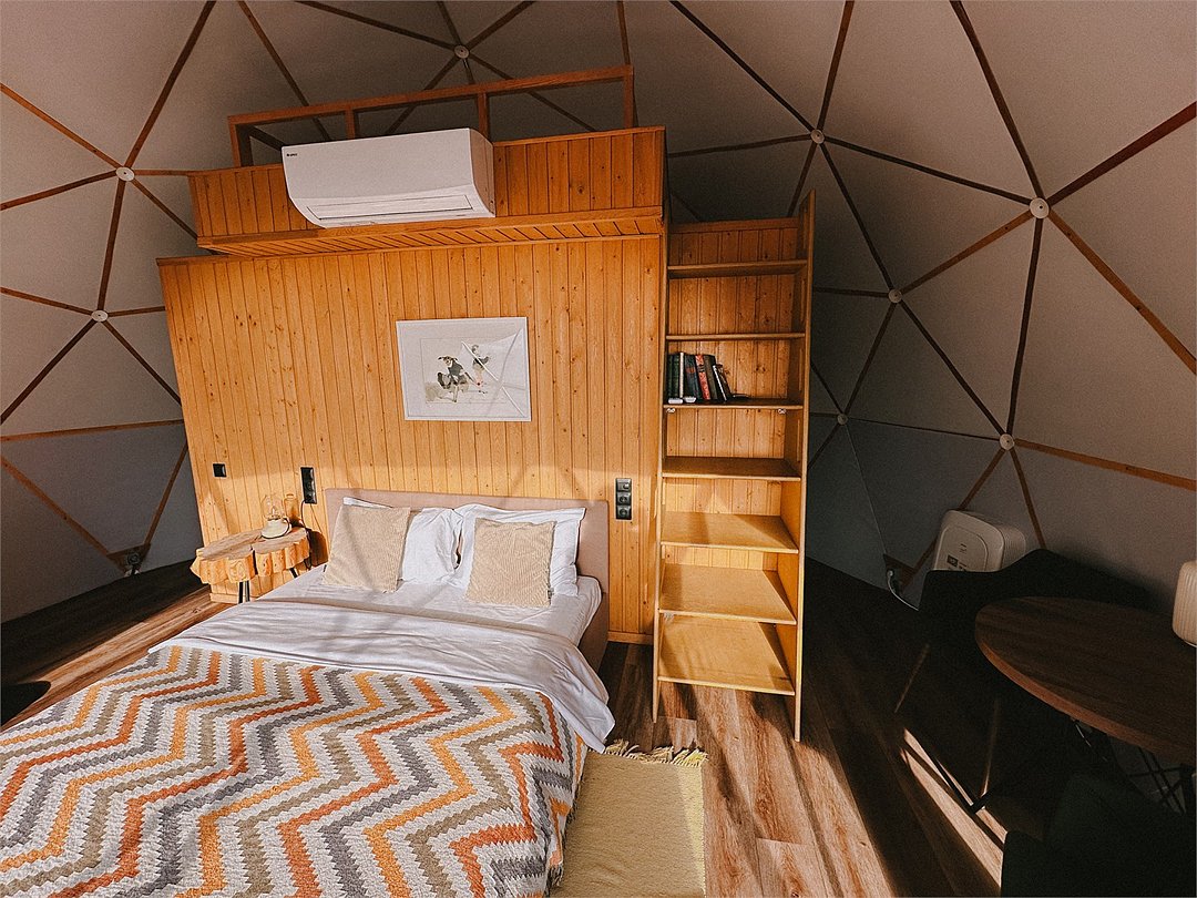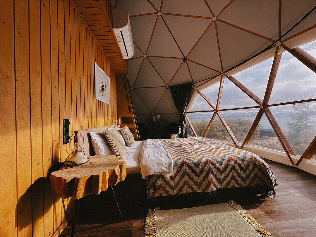 музыкальный центр, Wi-Fi, кондиционер, настольные лампы, фен, санузел, банные принадлежности, халаты, банные полотенца, тапочки, гигиенические средства, косметические средства, терраса, две двуспальные кровати, кресла, тумбы, стулья, шкаф для одежды, вешалки, обеденный стол, зеркало, комод, камин, набор посуды, обслуживание номеров, чайник, унитаз, раковина, питьевая вода, обеденная зона, гостиная зона, отопление, отдельный вход в номер, душ, высокие потолки, кухонная посуда, стаканы, столовые приборы, туалетный столик, мангал, панорамные окна, мини-холодильник, кухонный уголок, вид на залив, умная колонка, уборка номера, веранда, затемняющая штора, окна от пола до потолка, без питомцев, уличная мебельВ купольном шатре