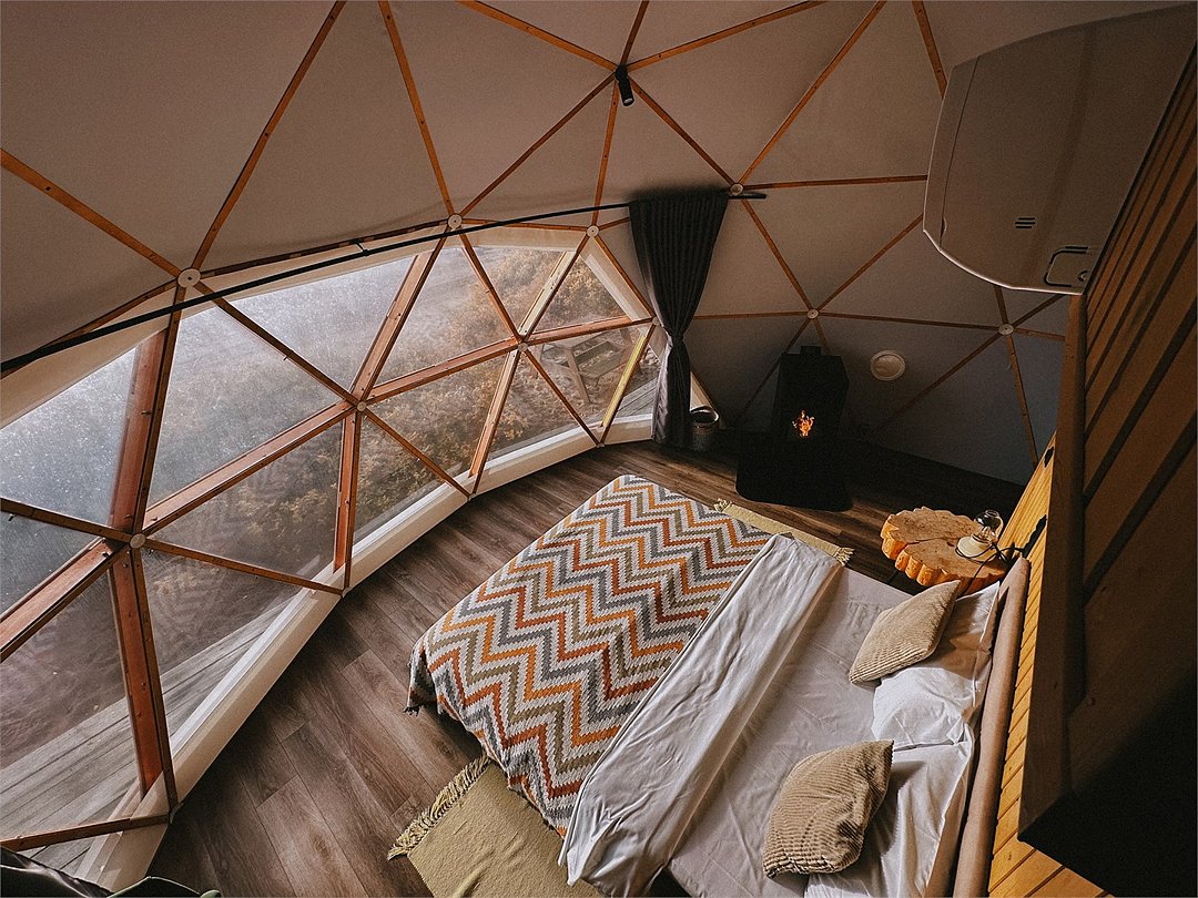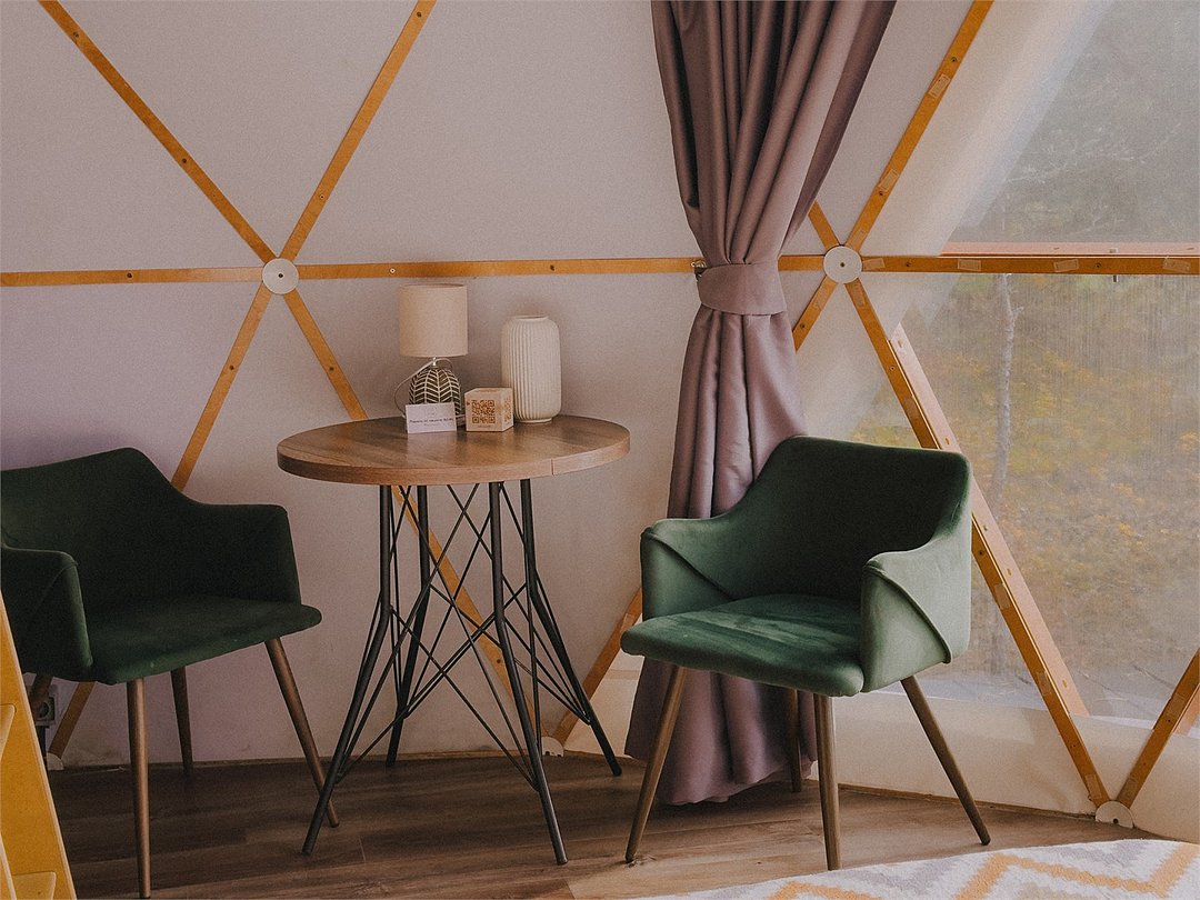 музыкальный центр, Wi-Fi, кондиционер, настольные лампы, фен, микроволновая печь, санузел, банные принадлежности, халаты, банные полотенца, тапочки, гигиенические средства, косметические средства, терраса, две двуспальные кровати, кресла, тумбы, стулья, шкаф для одежды, вешалки, журнальный столик, обеденный стол, зеркало, комод, мебельный гарнитур, камин, набор посуды, обслуживание номеров, чайник, унитаз, раковина, питьевая вода, обеденная зона, гостиная зона, отопление, отдельный вход в номер, душ, высокие потолки, кухонная посуда, стаканы, столовые приборы, стол, мангал, панорамные окна, мини-холодильник, кухонный уголок, вид на лес, умная колонка, уборка номера, веранда, затемняющая штора, окна от пола до потолка, можно с питомцами, миска, пакетик для выгула, уличная мебельВ купольном шатре