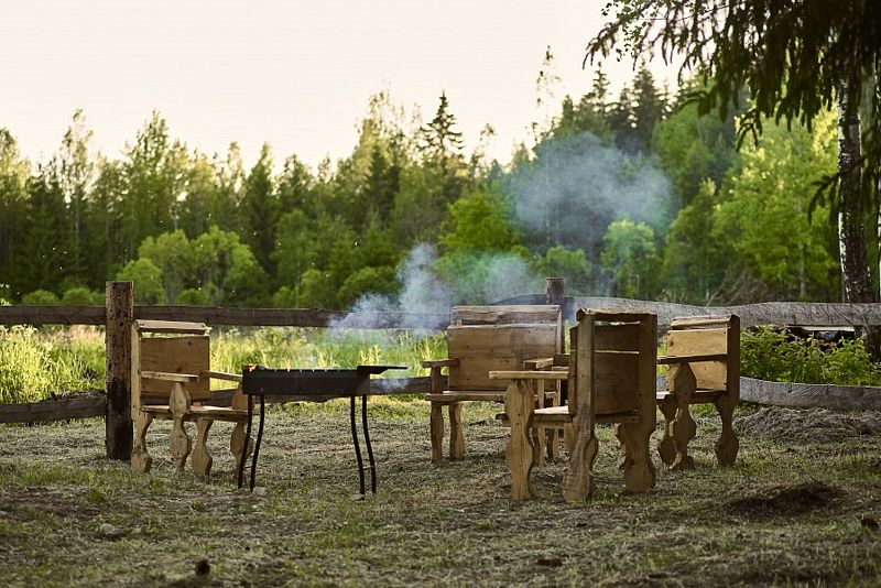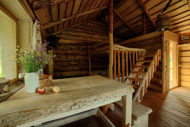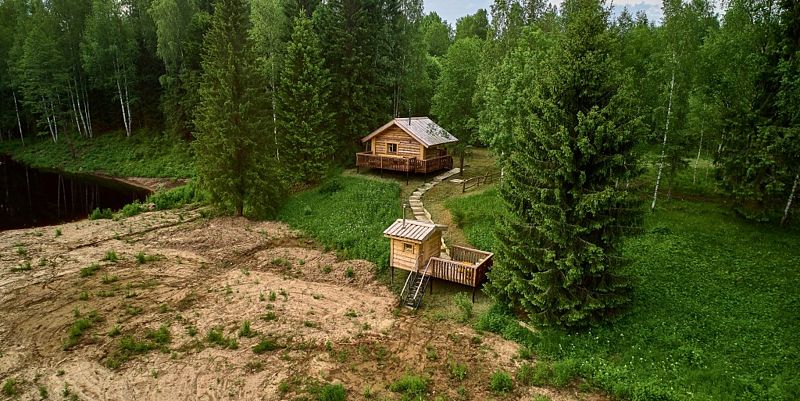 Мазаная Горка - это комплекс из шести авторских домов, рассчитанных на уединенный отдых, расположенных недалеко от реки Лемовжа.