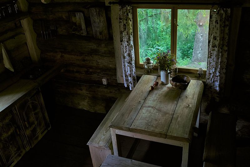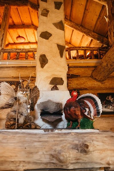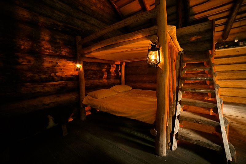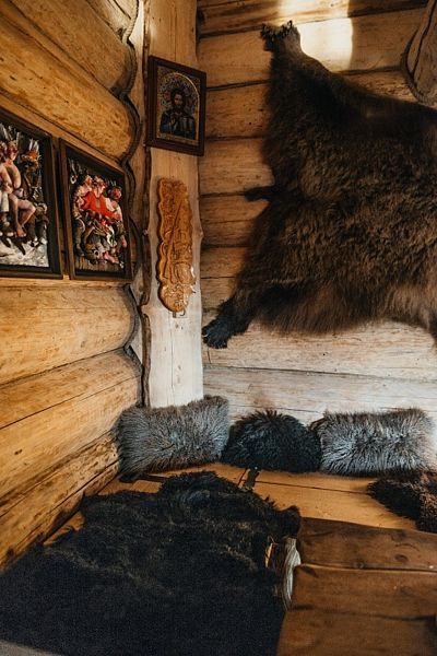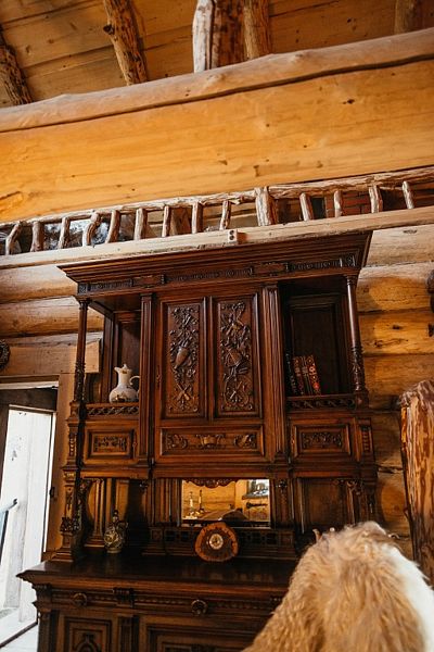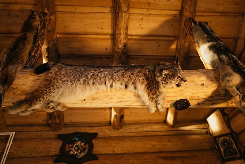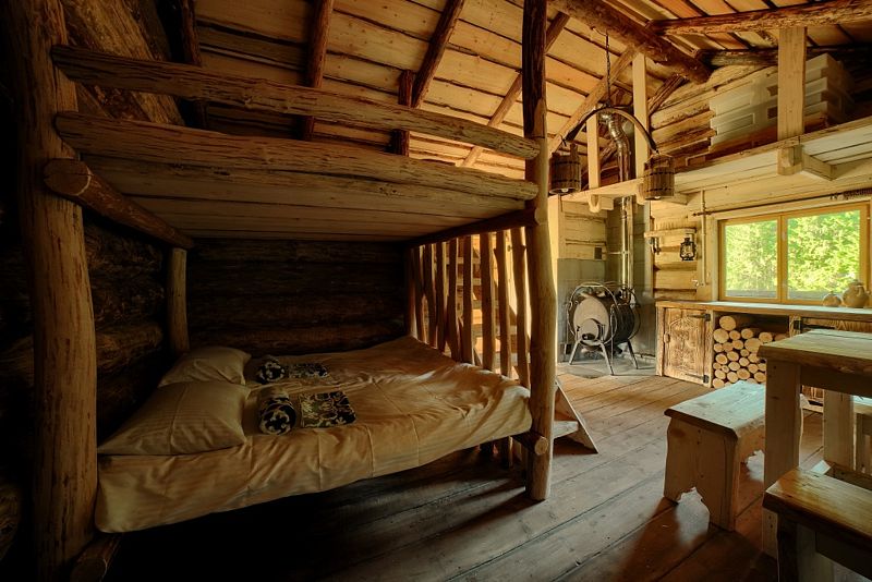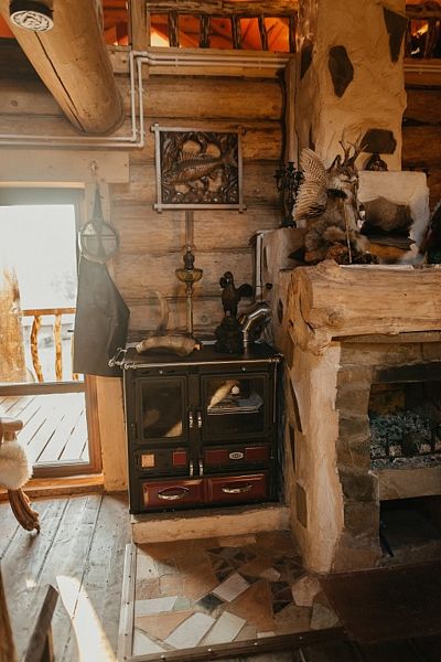 Охотничий дом - это просторный стильный дом с антикварной мебелью, камином и панорамной террасой. Он вмещает до 4 гостей. В доме - 1 двуспальная и 2 односпальных кровати. Кровати находятся рядом друг с другом.