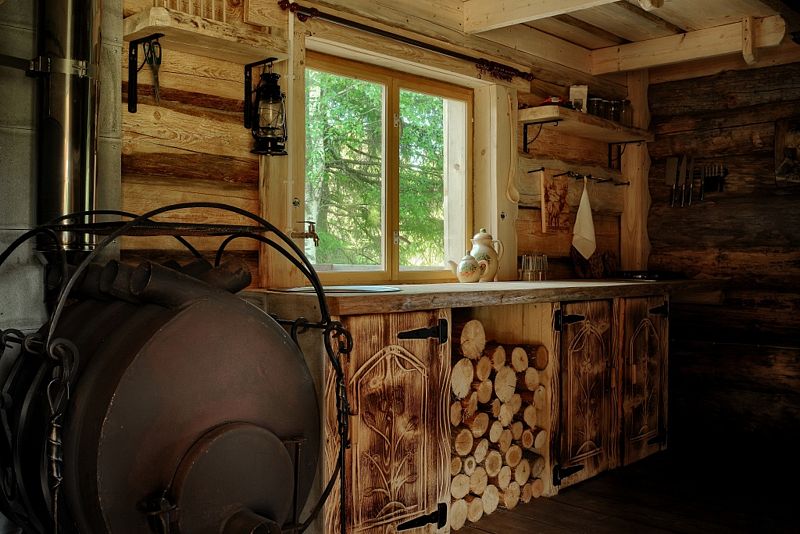 Дом оборудован газовой плитой, холодильником и дровяной печью. Электричество от сети, есть запасной генератор. В доме - двухъярусная двуспальная кровать и отдельный санузел с раковиной и туалетом.