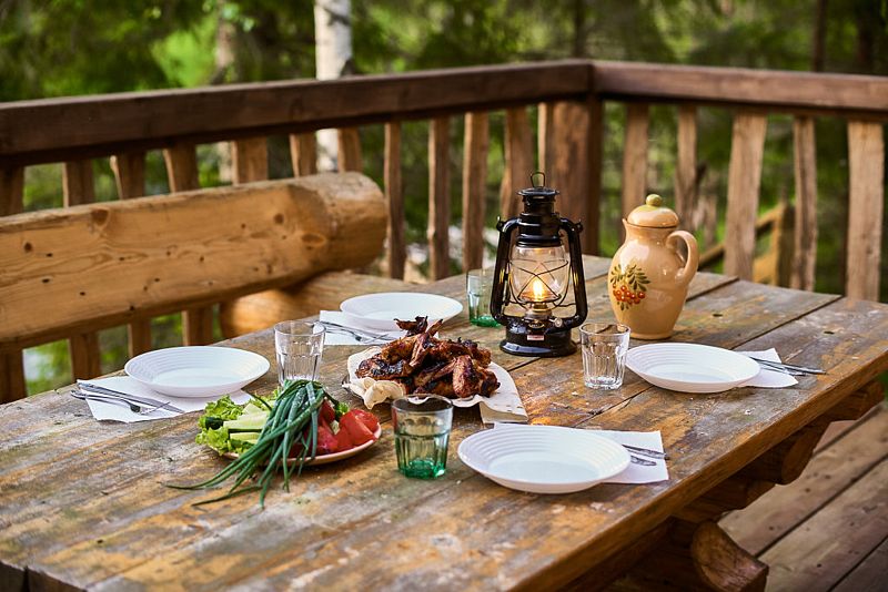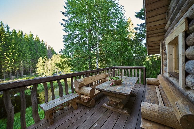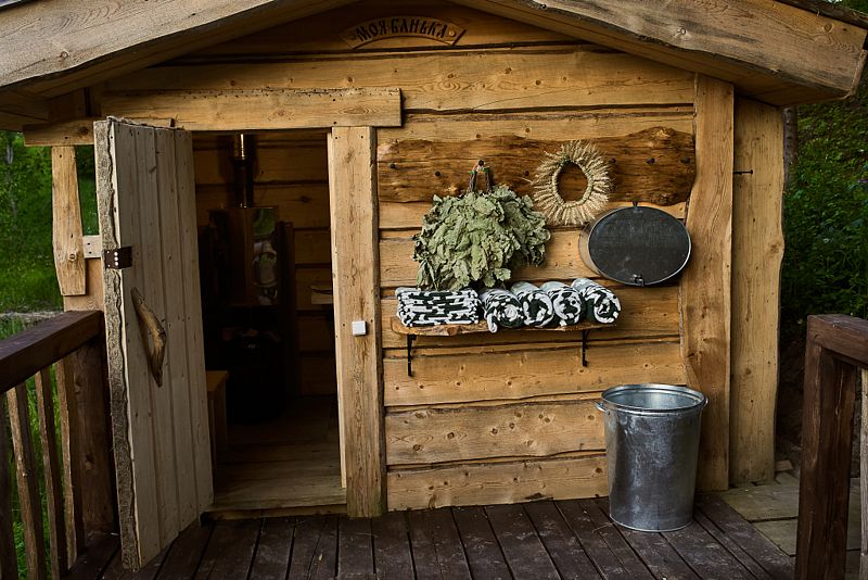 На территории комплекса гости могут воспользоваться собственной баней, окунуться в реку, насладиться свежим и чистым лесным воздухом. Кроме того, на территории живут ручные животные - ослик и як, с которыми гости могут пообщаться. Комплекс также разрешает размещение гостей с их воспитанными домашними питомцами без залога и доплаты.