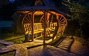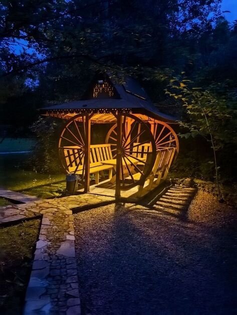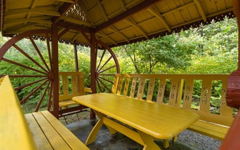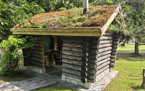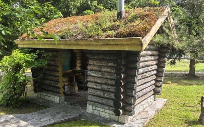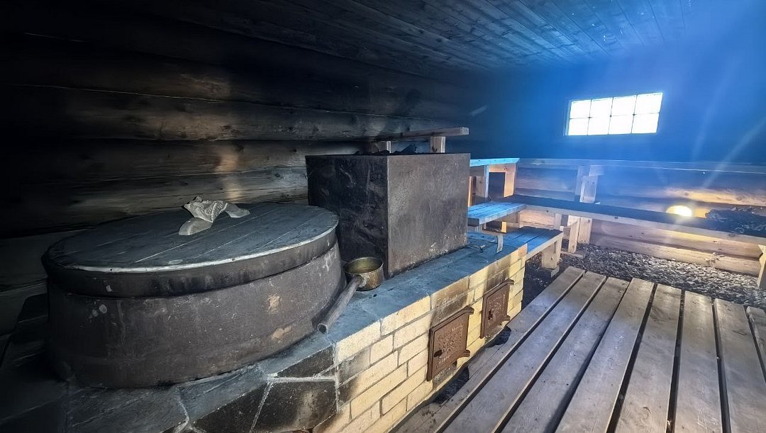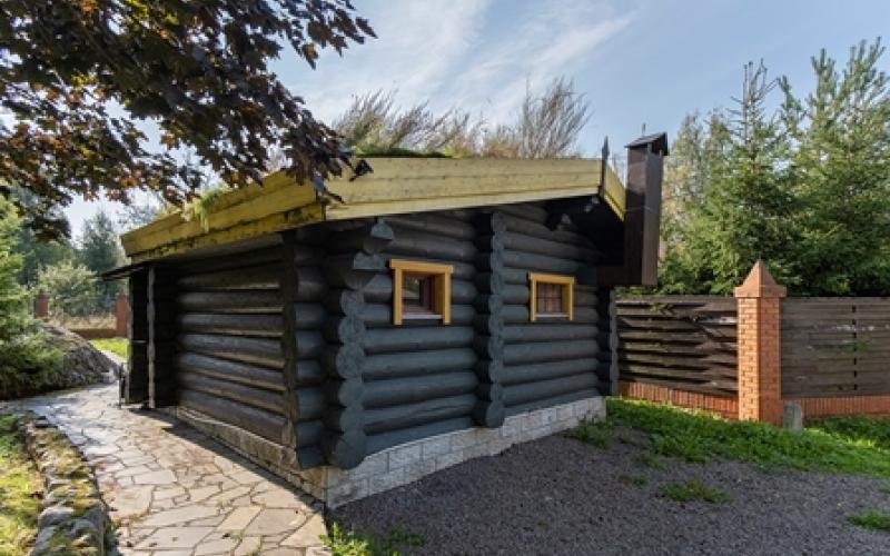 Баня по-чёрному — это та сказочная баня, где происходят разнообразные чудеса! Баня представляет собой невысокую бревенчатую избушку с интересной натуральной зеленой кровлей. В этом месте вы не обнаружите современной техники, телевизора и других благ цивилизации — это место предназначено для того, чтобы вы могли побыть наедине с самим собой, расслабиться. У банной печки отсутствует вытяжная труба, а потому аромат дров, трав и веника ощущается здесь совсем иначе. Тепло в такой бане держится в основном у пола, в отличии от бани по-белому, где жар весь скапливается в верхней части бани.