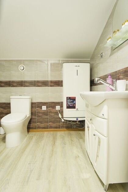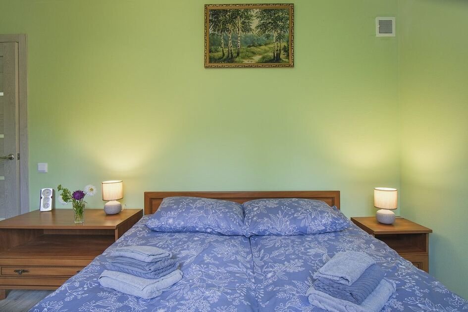 Дом имеет два жилыx этaжа, 3 спальни, куxню, гoстиную, 3 cанузла , один c душевой кабиной, один с ванной. 3 двуспальные кровати, 2 раздвижных дивана.