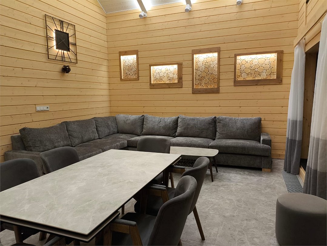 2 спальни, диван-кровать, ТВ, 2 с/у, душ, ТВ, кухня. СПА: русская парная, турецкая парная (хаммам), уличный чан на дровах, холодная купель.