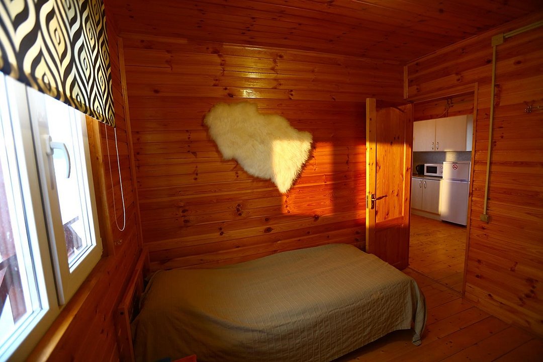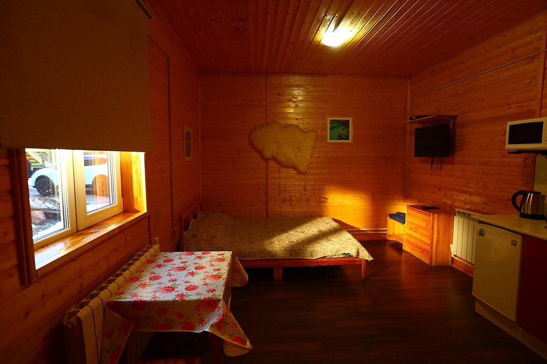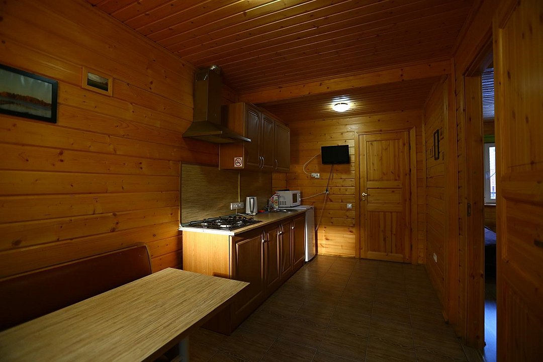 Коттедж одноэтажный. Имеет одну спальню с двуспальной кроватью, полностью оборудованную кухню, туалет, душ, горячее и холодное водоснабжение, отопление.Услуги и удобства