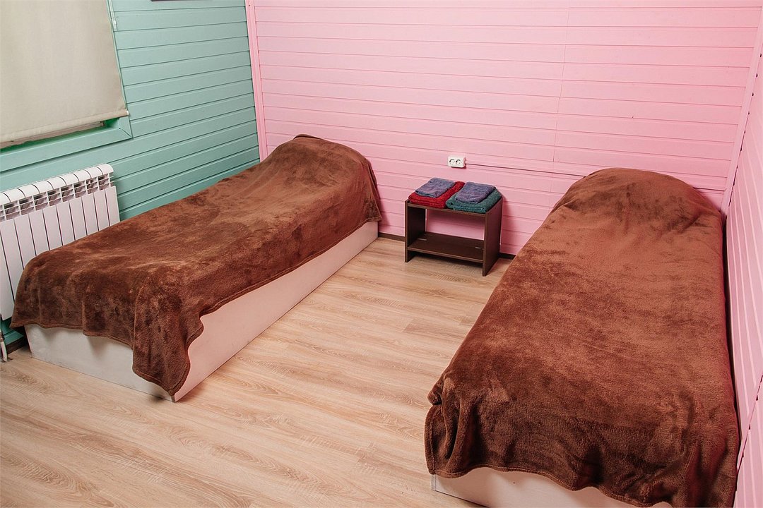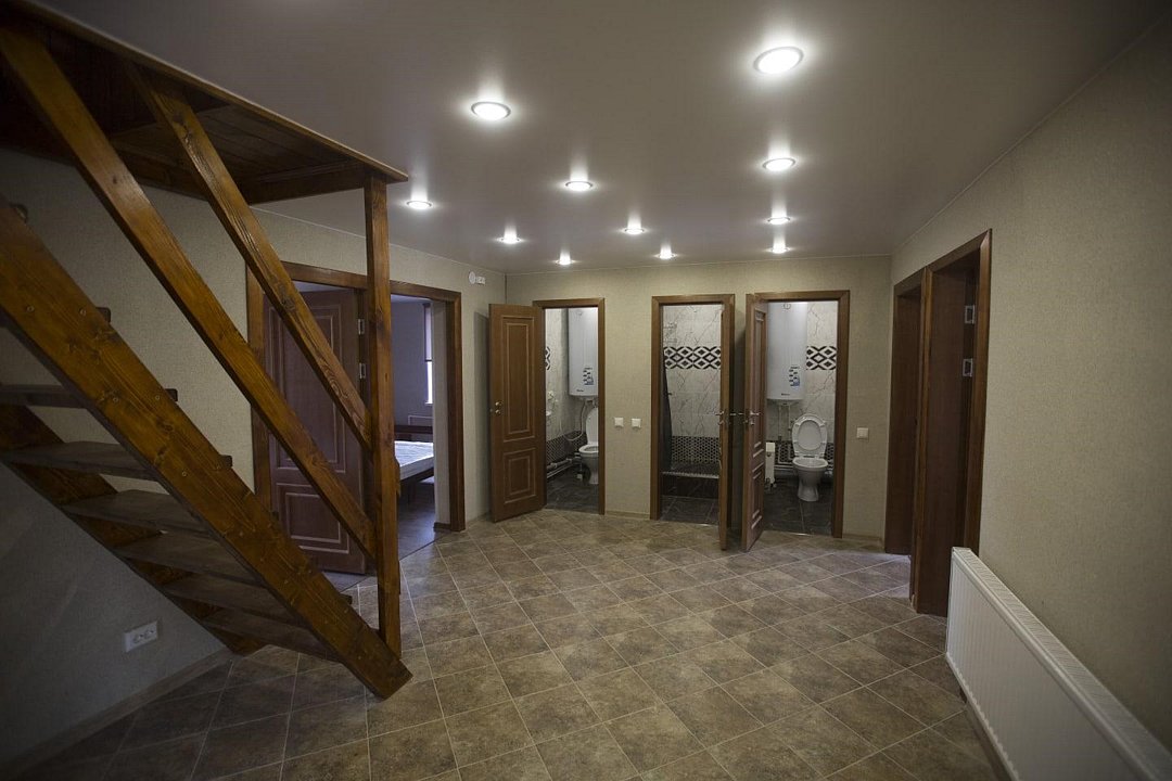 Коттедж рассчитан на 20 основных мест и 9 дополнительных, В нём 3 этажа. Первый этаж: гардероб, 3 спальни, туалет, душ, сауна, большая кухня-гостиная с выходом на террасу. Второй этаж: 6 спален, 2 туалета, душ, гардероб. Третий этаж: свободное большое помещение с дополнительными кроватями (9 мест). В стоимость входят 20 основных мест В случае бронирования коттеджа на 6-8 человек, в пользование гостям предоставляется только первый этаж коттеджа!Услуги и удобства