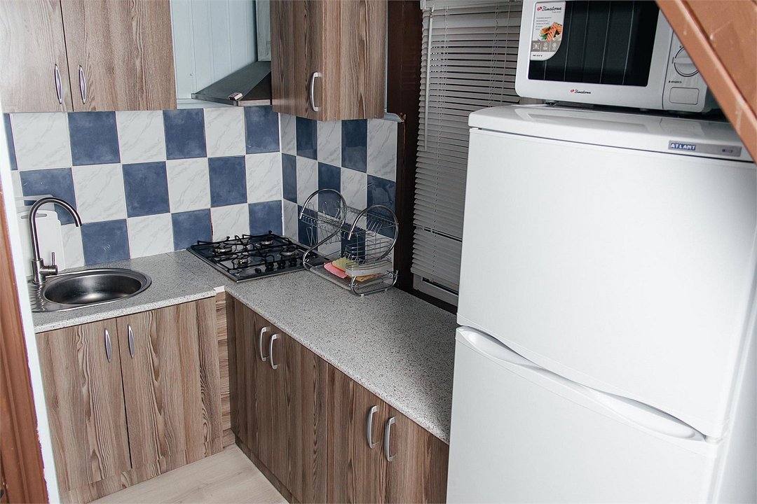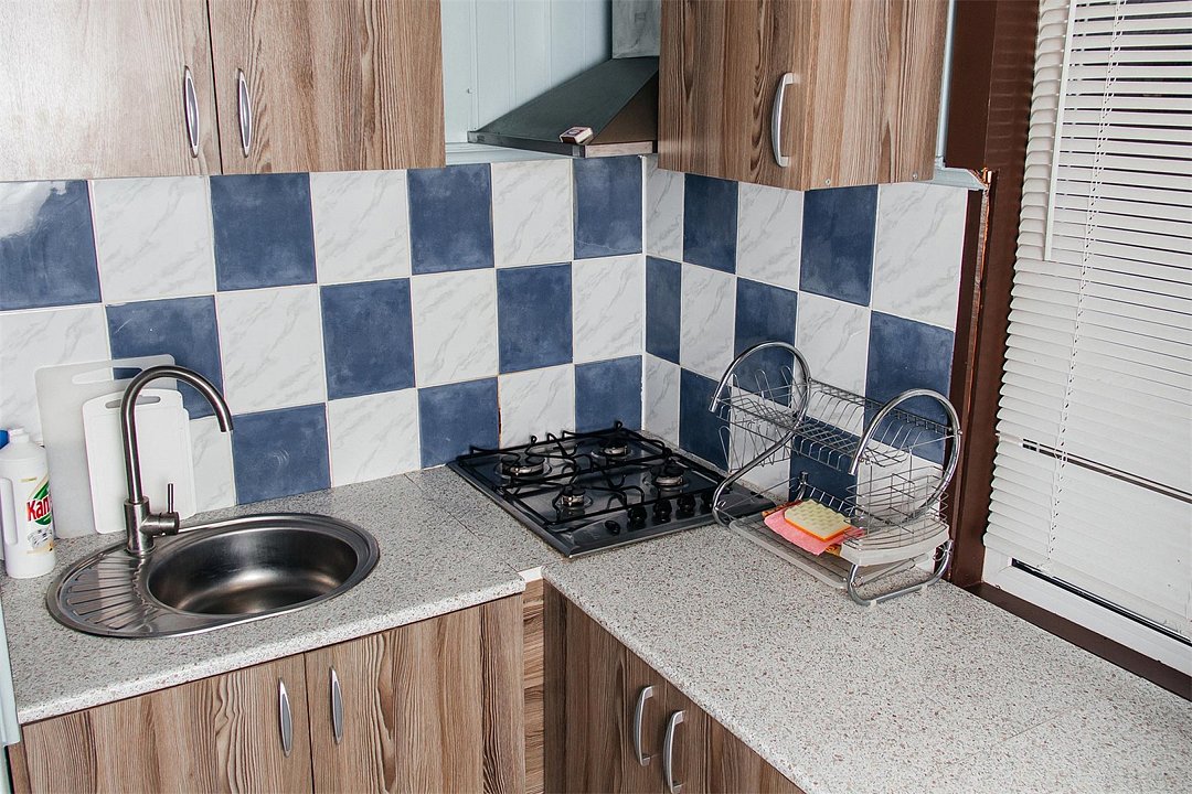 Спальня с двумя полуторными кроватями, кухня с газовой/электрической плитой, чайник, холодильник, набор посуды и кухонных приборов, телевизор, биотуалет, душ, полотенца для лица и тела, постельное бельёУслуги и удобства