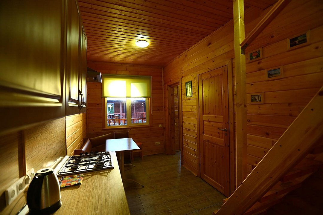 1 этаж: полностью оборудованная кухня с разборным двуспальным диваном, туалет, душ, горячая и холодная вода, отопление, холодильник, электрочайник, вид на озеро. 2 этаж: 2 спальни, в каждой двуспальная кровать.Услуги и удобства