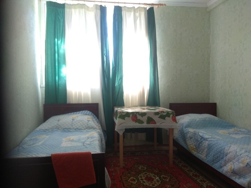 Номер с двумя односпальными кроватями. Общая кухня с холодильником. душевая кабина и 2 туалета в отдельно стоящем здании. Две беседки с мангалами.