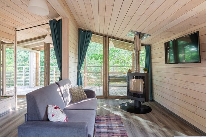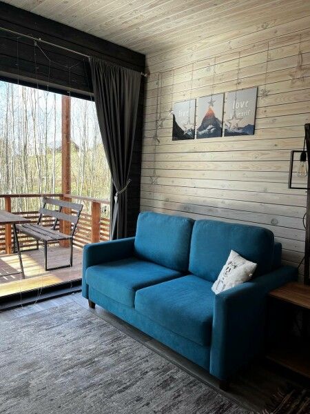 Коттедж имеет 3 изолированные спальные комнаты с панорамным остеклением.
