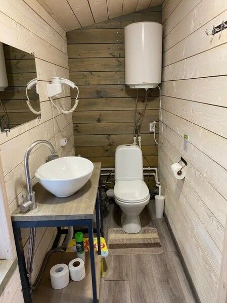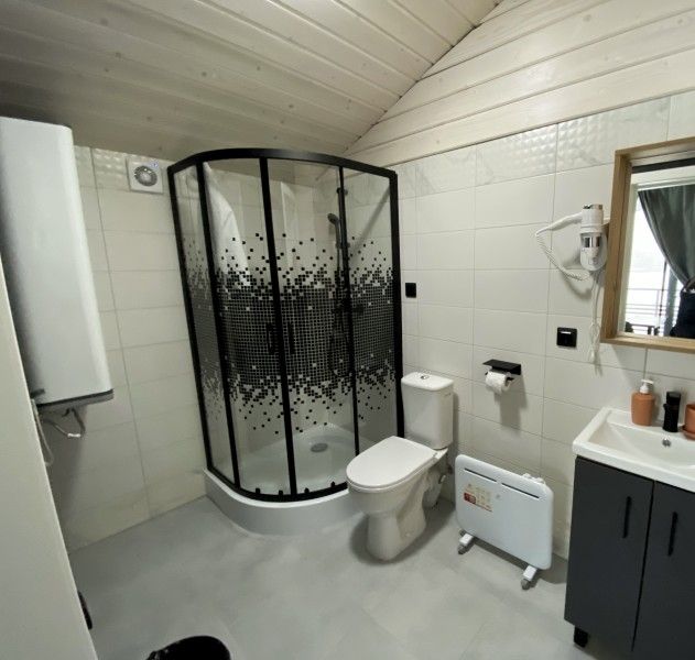 Коттедж отапливается настенными конвекторами установленными в каждой зоне дома. Все комнаты оснащены москитными сетками. В доме 2 просторных санузла, в которых уместилось все необходимое: душевая кабина, унитаз, раковина на тумбе с зеркалом, теплый пол, фен, гигиенические принадлежности (крем-мыло для рук в дозаторе, гель-шампунь в дозаторе, туалетная бумага, тапочки, полотенца), бойлер, стеллаж для полотенец, корзина для белья. Каждому гостю предоставляется 2 полотенца.