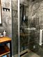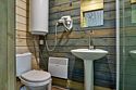 Небольшой санузел в котором уместилось все необходимое: Ванная/душевая кабина, унитаз, раковина на тумбе с зеркалом, фен, гигиенические принадлежности и средства, по 2 полотенца на каждого гостя.