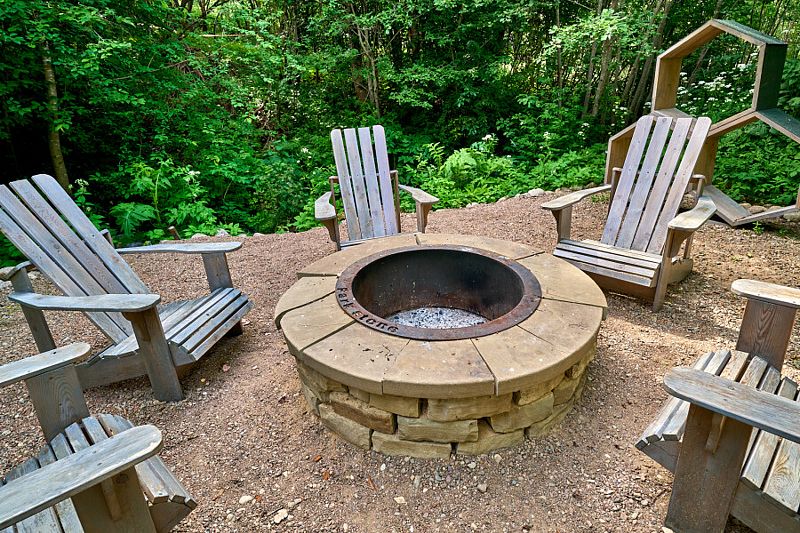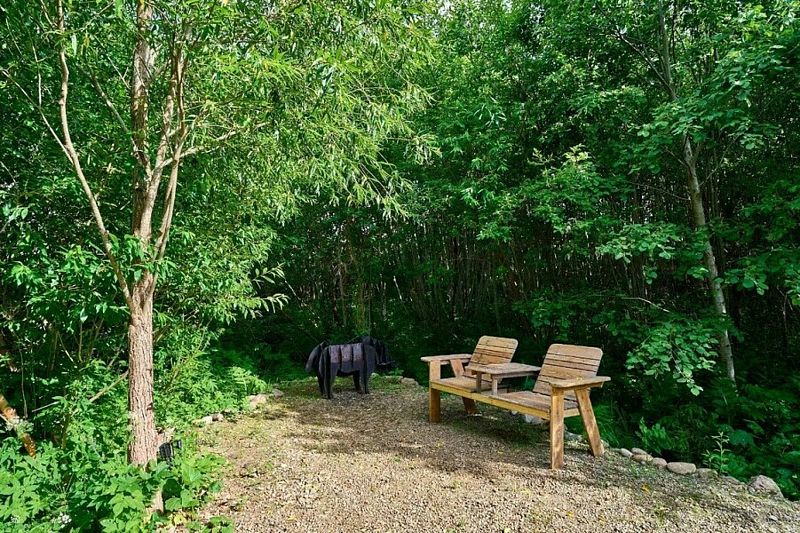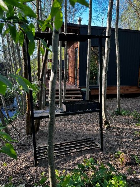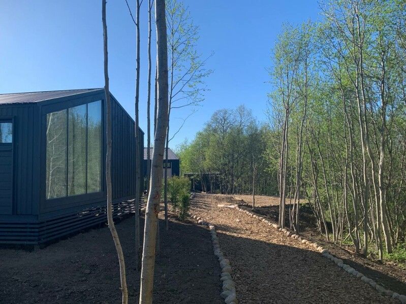 У каждого коттеджа расположена освещенная мангальная зона и уличной мебелью, пространство зонировано ландшафтом и растениями.