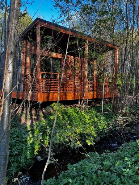 Комплекс расположен в живописном уголке деревни Гостилицы, Ленинградская область, и предлагает своим гостям разместиться в уютных коттеджах и банных домиках с купелями, которые расположены на обширной ухоженной территории с зарыбленными прудами, экологическими тропами и водопадом неподалёку.