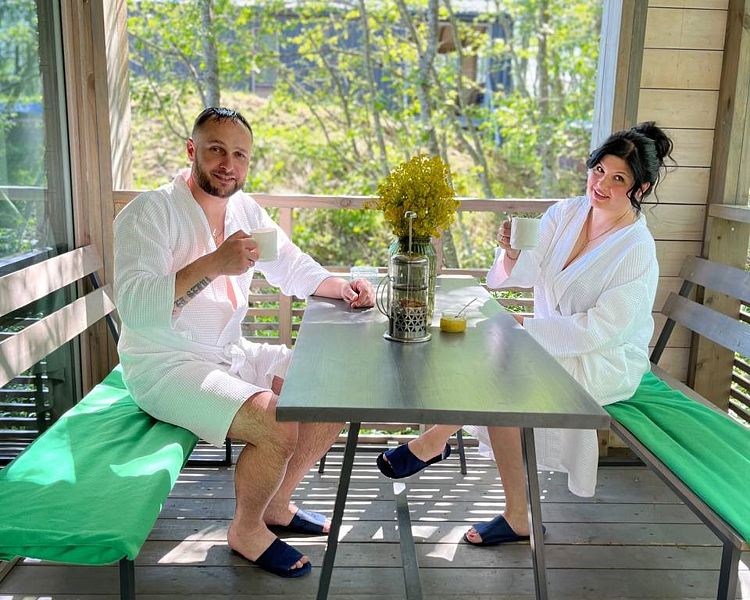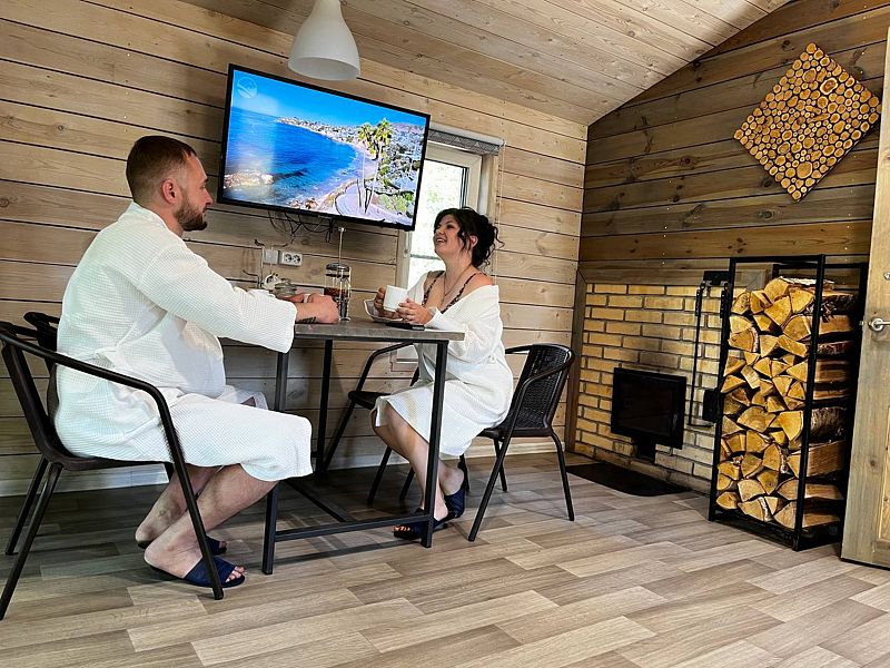 Расслабиться и насладиться тишиной вы сможете в настоящей русской бане в банном доме с купелью под открытом небом. Каждый банный дом оборудован гостиной, кухней, террасой и мангалом.