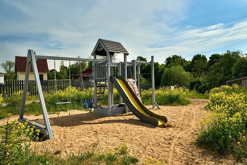 У каждого коттеджа расположена освещенная мангальная зона с уличной мебелью, пространство зонировано ландшафтом и растениями.