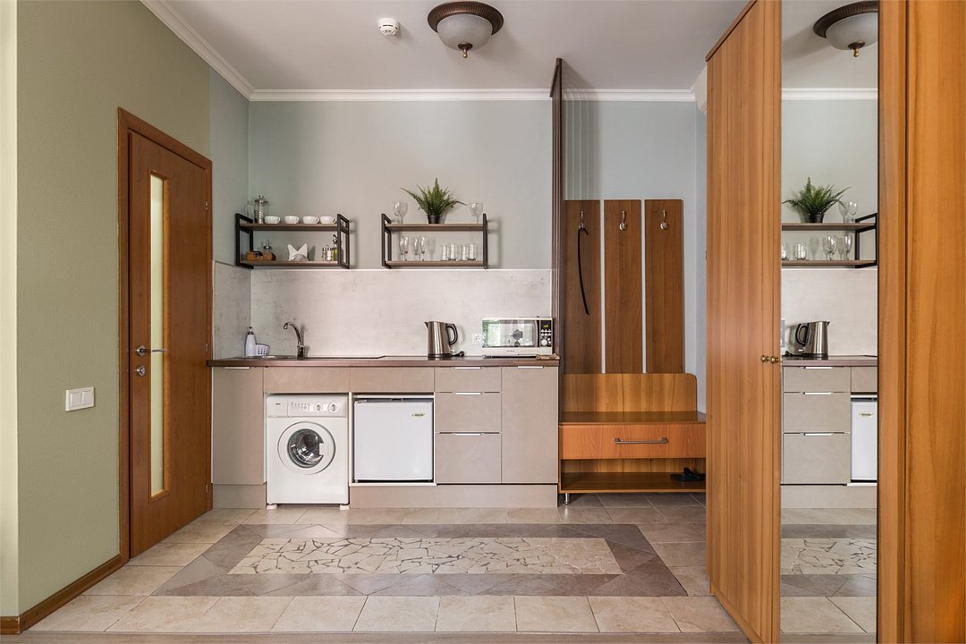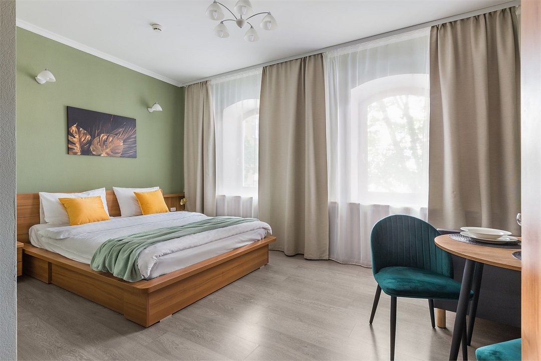 Комфортабельная студия 20 кв.м. для проживания двух человек в самом центре Санкт-Петербурга с окнами на тихую улицу. Студия оснащена современной мебелью и техникой для полноценного комфортного краткосрочного и длительного проживания. В студии гармонично расположена спальная зона с двуспальной кроватью и ортопедическим матрасом, кухня и свой сан.узел. Кухня оснащена посудой, чайником, электрической плитой, холодильником. Мы предоставляем для Вас свежее постельное белье, полотенца, косметические принадлежности в день заселения, средства для чистки одежды, губки и сушильные приборы для обуви. Самое главное – студия оснащена электронным замком, что позволяет организовать для Вас бесконтактное заселение. За один день до заезда Вы получите код для замка, которым сможете пользоваться в течение всего проживания. Так же, в целях безопасности, общие зоны оборудованы видеокамерами. Апартаменты находятся на 1 и 2 этажах.Услуги и удобства