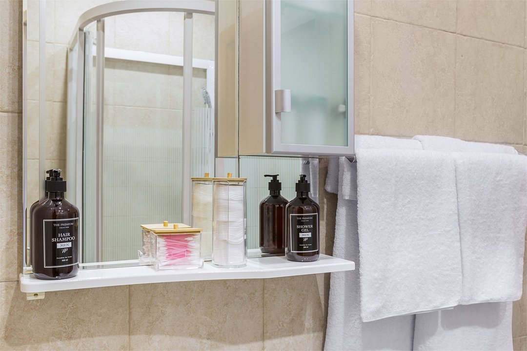 телевизор, Wi-Fi, кондиционер, фен, плита для приготовления пищи, микроволновая печь, утюг, ванная комната, душевая кабина, банные полотенца, тапочки, косметические средства, две односпальные или большая двуспальная кровать, стулья, шкаф для одежды, вешалки, обеденный стол, зеркало, набор посуды, стиральная машина, чайник, унитаз, раковина, обеденная зона, отопление, вид на город, ламинат, стаканы, кухонная утварь, столовые приборы, тумба, мини-холодильник, мини-кухня, вешалки-плечики, мылоВ апартаментах