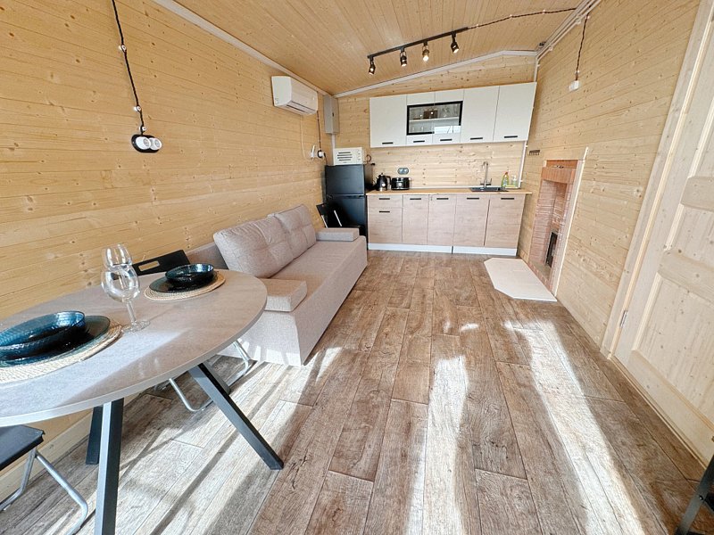В доме 1 спальня и большая кухня-гостиная и ванная комната со всеми удобствами.