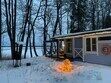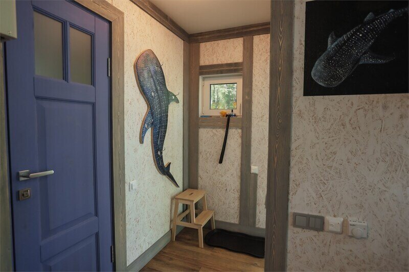 В домике комфортная температура поддерживается за счет пола с электроподогревом.