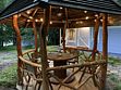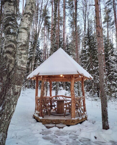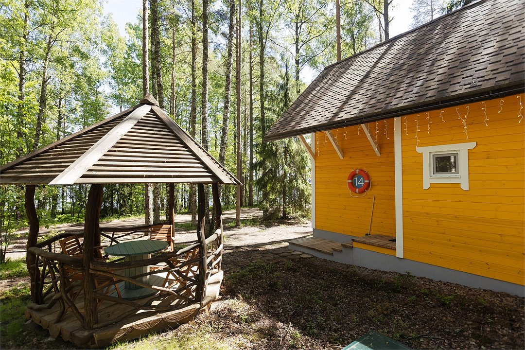 Рядом с каждым домиком расположена беседка с уличной мебелью и освещением и оборудована площадка для барбекю. Угли, дрова, розжиг и принадлежности для мангала можно приобрести у администратора.