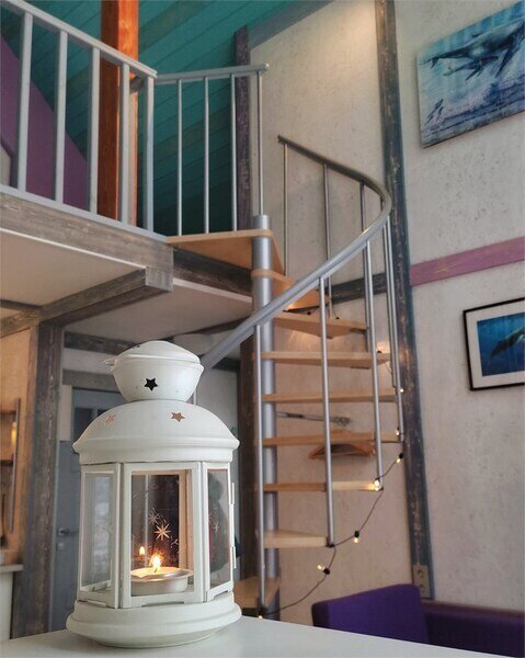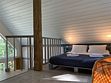 Коттедж оборудован всем необходимым для комфортного размещения четырех человек или семейной пары с двумя детьми. На втором этаже двуспальная кровать, на первом — двуспальный диван-кровать. Дополнительно можно установить кроватку-манеж.
