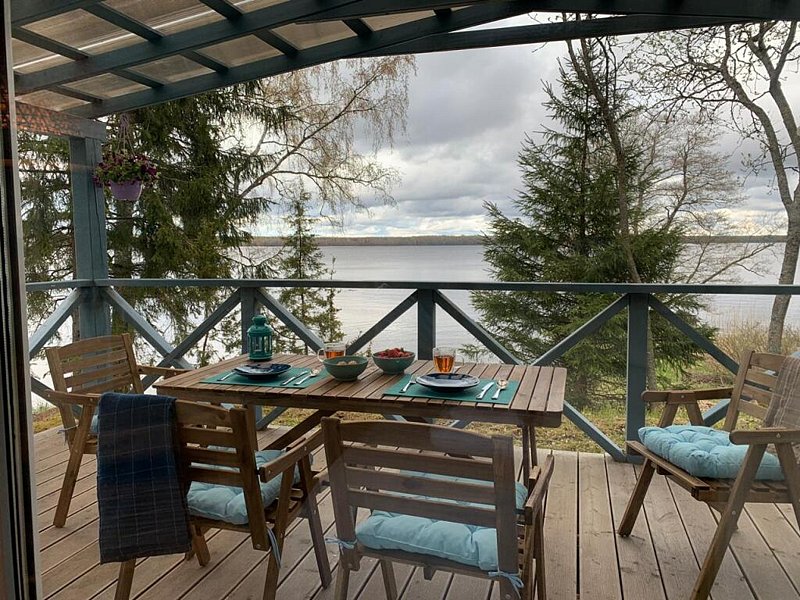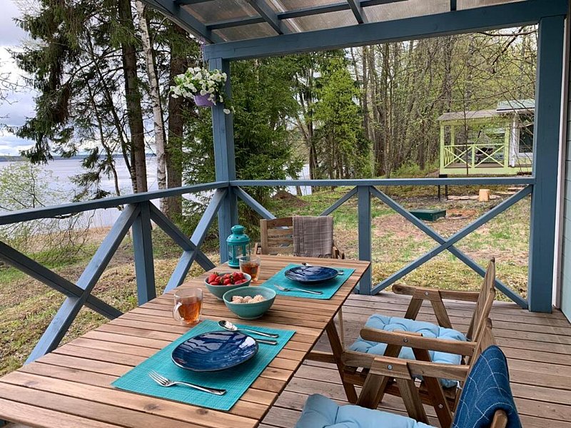 Одноэтажный уютный коттедж на второй линии с беседкой, панорамными окнами и прекрасным видом на залив. Коттедж оборудован всем необходимым для комфортного размещения двух человек или семейной пары с ребенком.