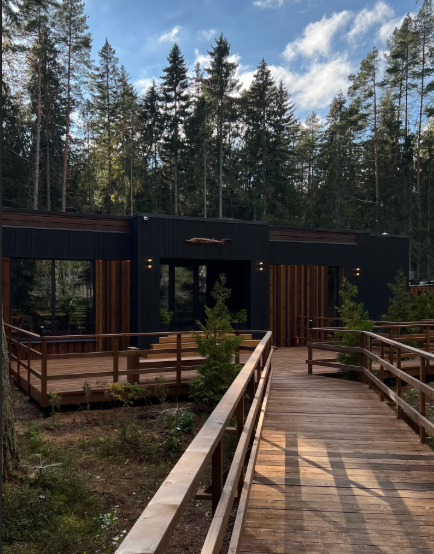 Всего в 75 километрах от Санкт-Петербурга, среди великолепия хвойного леса, раскинулась база отдыха «Мы здесь». Современные виллы с обширными панорамными окнами, расположенные на берегу Финского залива, дарят ощущение полного погружения в умиротворение и гармонию с природой. До аэропорта — 111 километров.