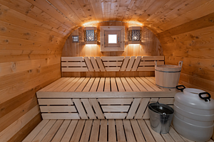 Инфраструктура: обливное ведроМинимальное время аренды: 3 часаНа территории имеются две бани-бочки, которые растапливают дровами специально для гостей. Парение в русской бане обеспечивает расслабление и хорошее настроение на весь день.