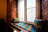 В Студии 2 окна: одно в тихий дворик, из другого открывается прекрасная перспектива на крыши близ лежащих домов, в хорошую погоду виден шпиль и башня Церкви Архангела Михаила при Михайловском замке.