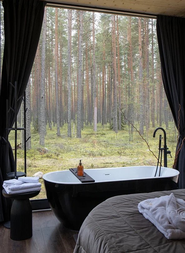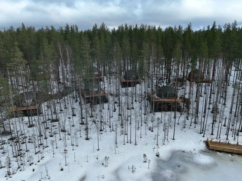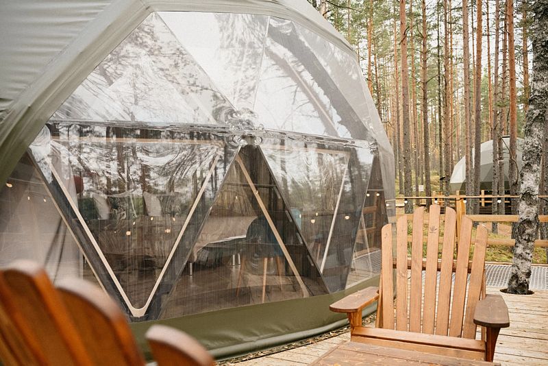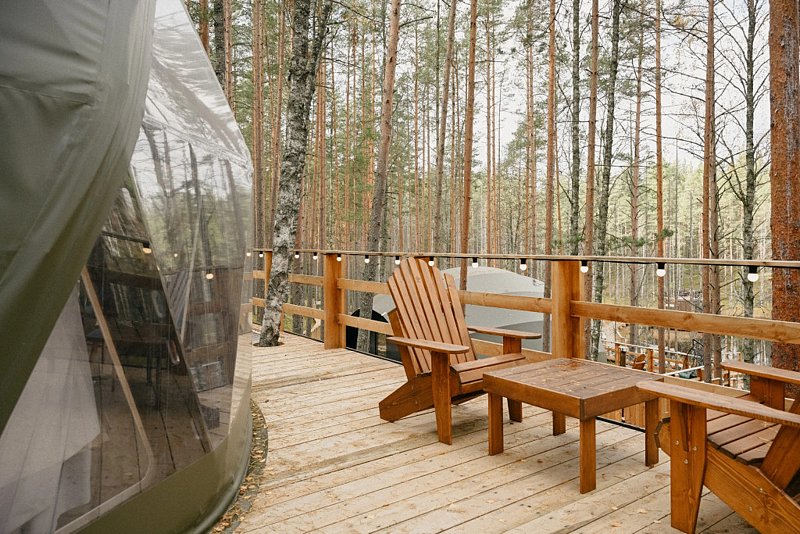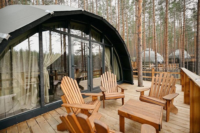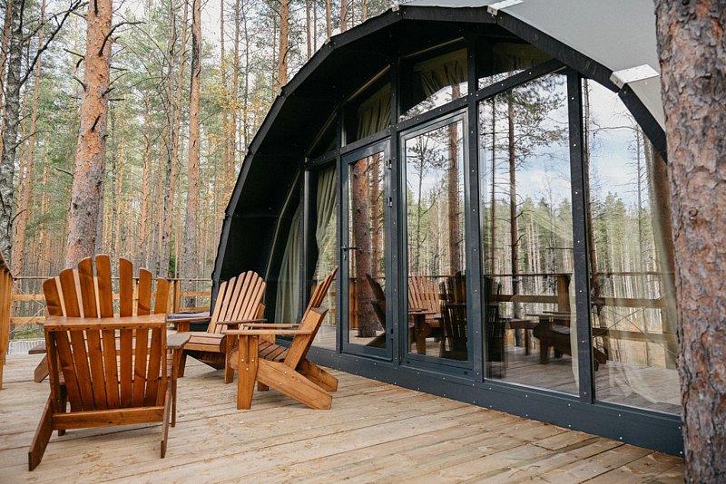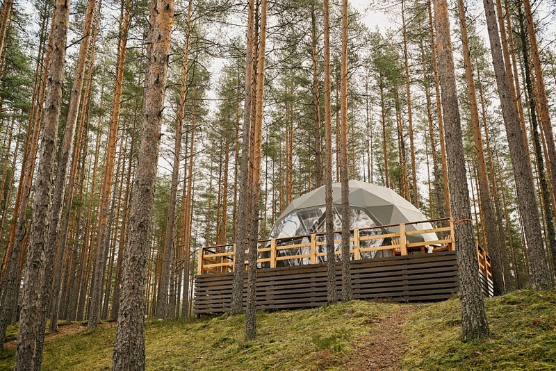 Комфортабельные лоджи, зеркальные дома и сферы с купелью расположились на холмах, покрытых ягелем и мхом, расположились посреди нетронутого волшебного леса.