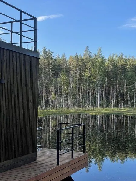 Уникальное пространство для очищения души и тела. Баня расположена прямо на воде, в ней уютная парная с панорамным видом на озеро, комфортная комната отдыха, душ и санузел.