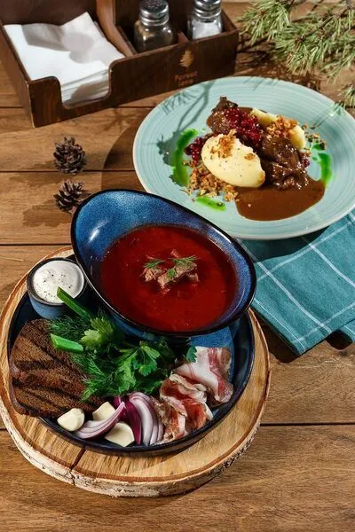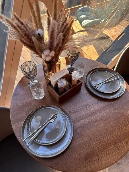 Из окон шатра открывается прекрасный вид на лес, что создает особую атмосферу уюта и спокойствия. Здесь вы сможете насладиться блюдами, приготовленными с любовью и заботой, а также ароматным авторским чаем и кофе.