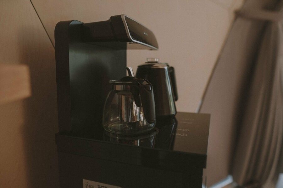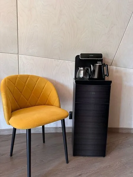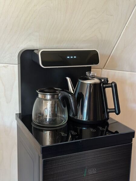• Кухонная зона оснащена чайной станцией, мини-холодильником и набором посуды для сервировки блюд.