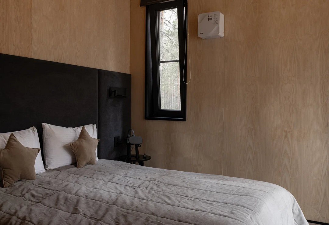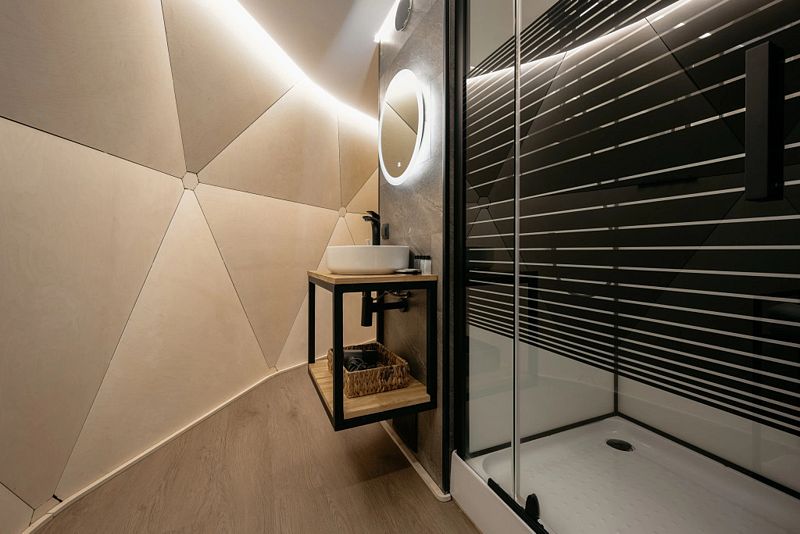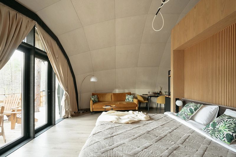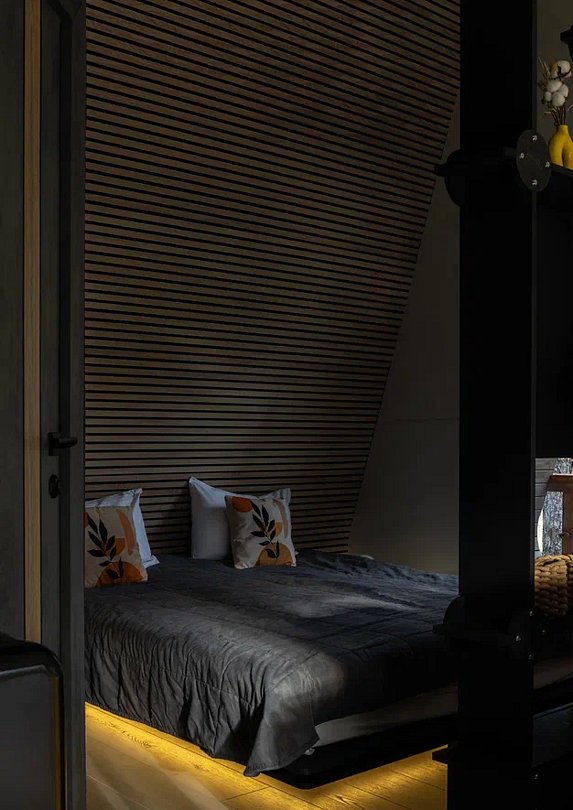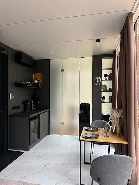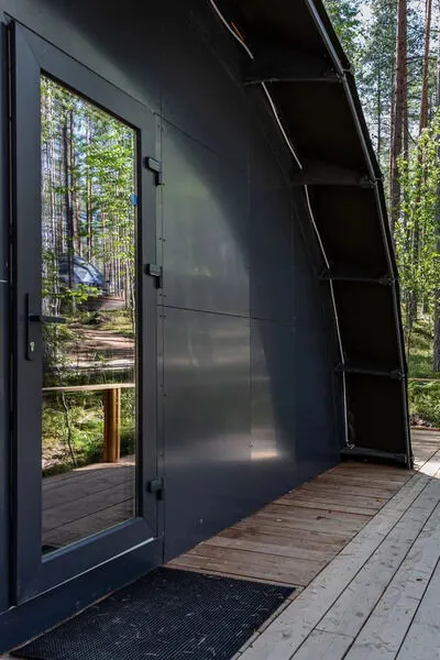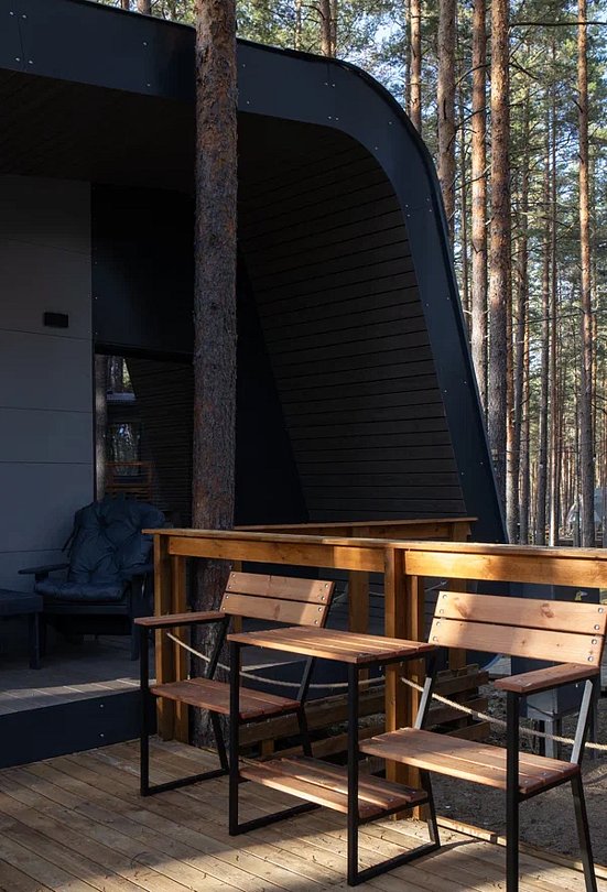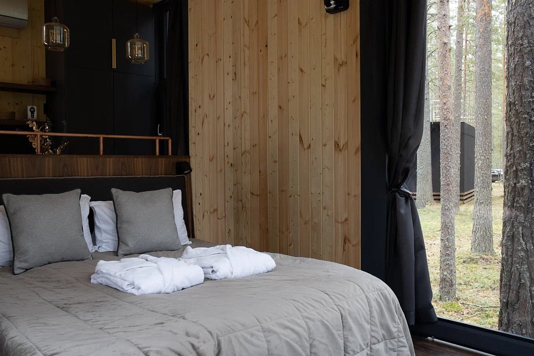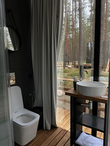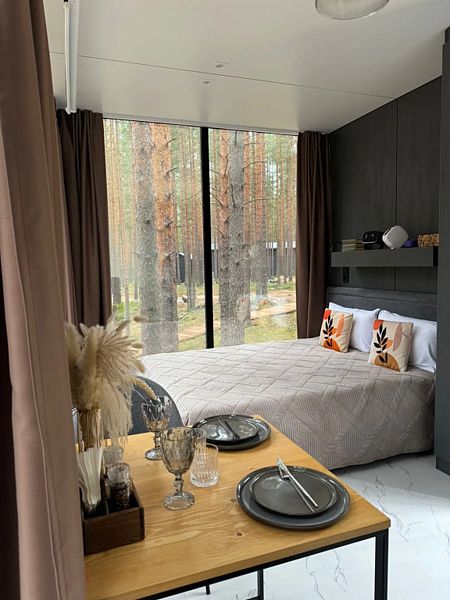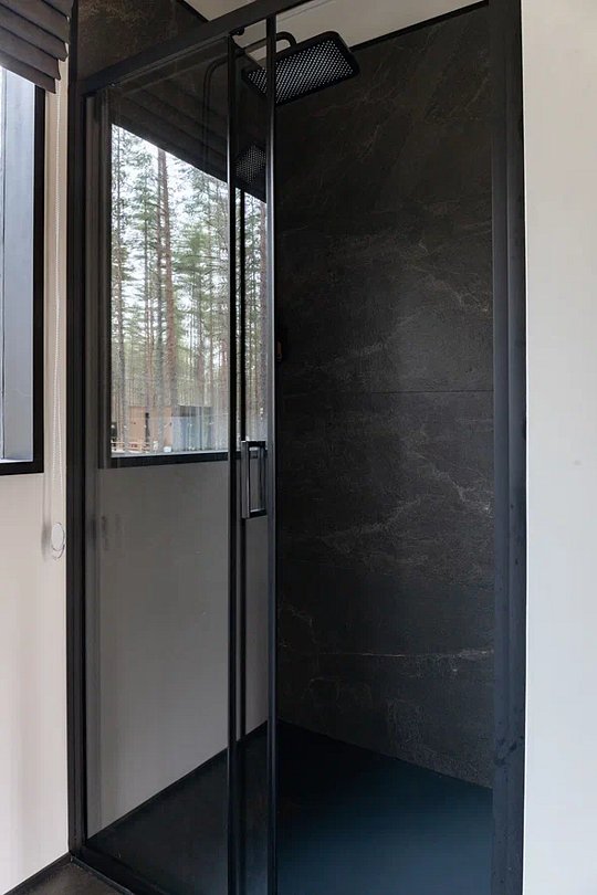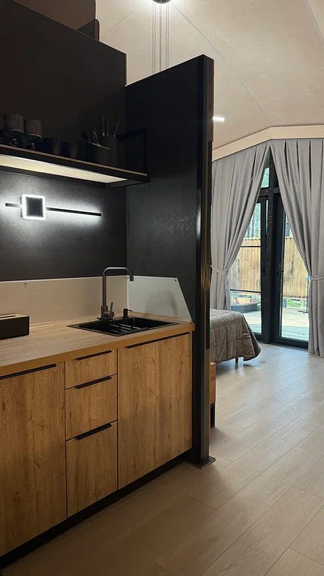 • Полная приватность: в темное время суток панорамные дома при включенном свете могут быть заметными снаружи, поэтому дом Дзен дополнен шторами black out, которые обеспечат Ваше абсолютное уединение и безмятежный сон.