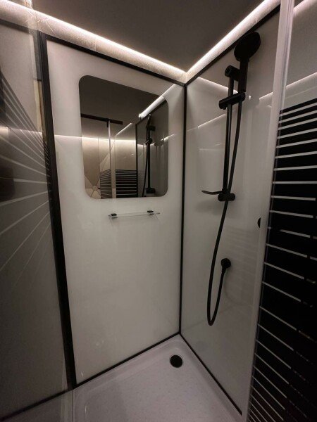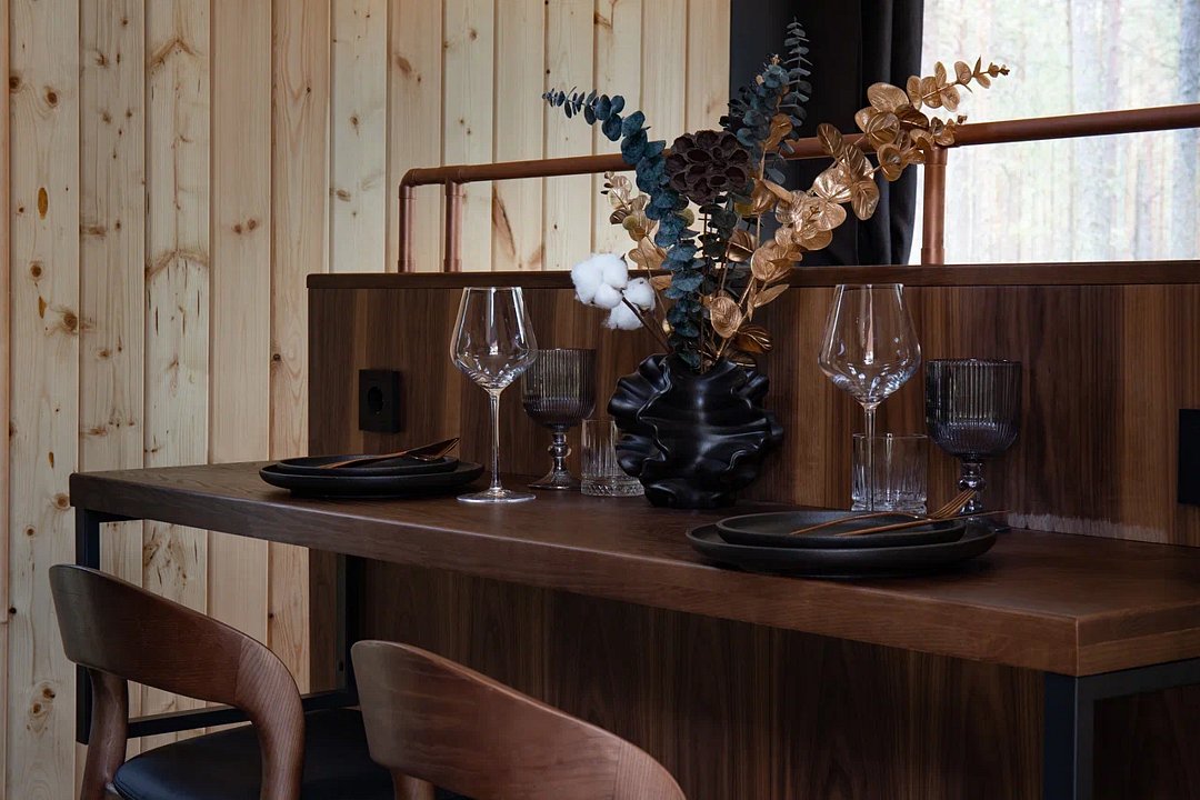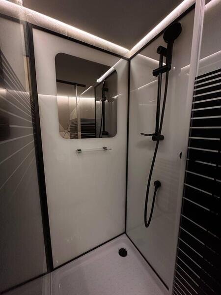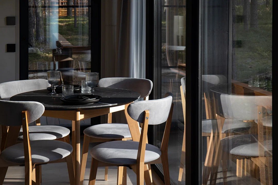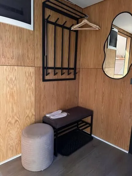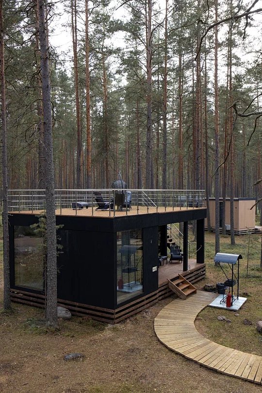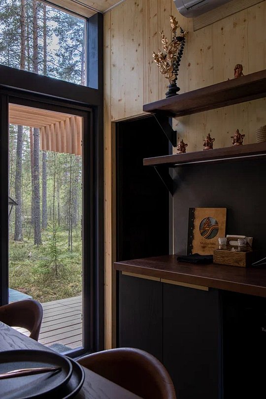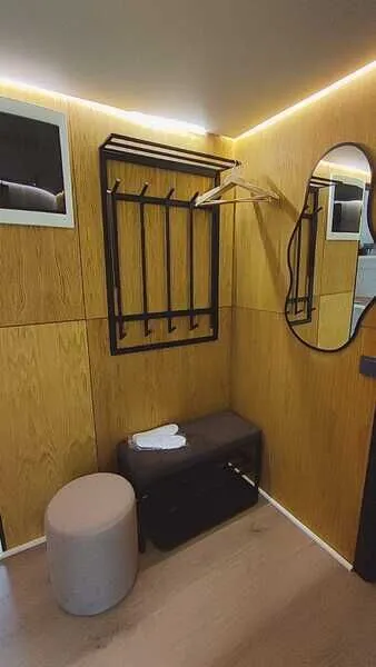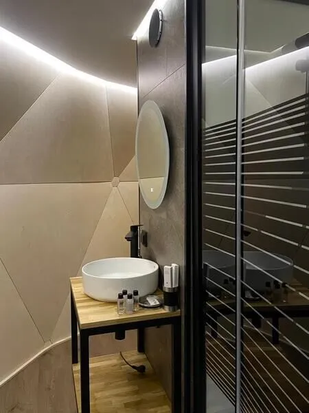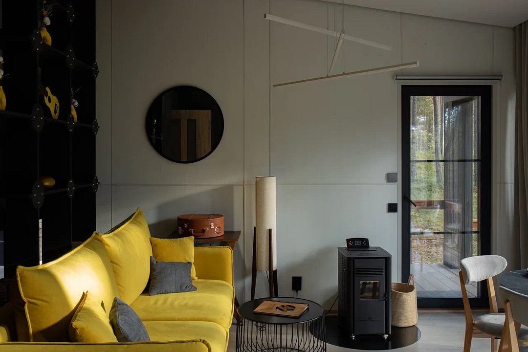 • Полная приватность: в темное время суток панорамные дома при включенном свете могут быть заметными снаружи, поэтому дом Дзен дополнен шторами black out, которые обеспечат Ваше абсолютное уединение и безмятежный сон.