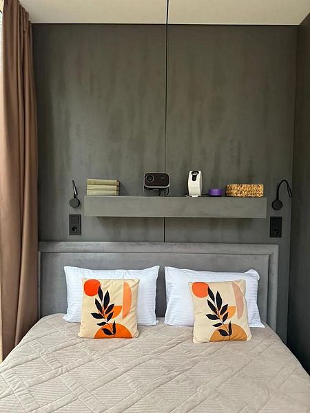 • Внутри вас ждет стильное пространство, продуманное до мелочей. Удобная двуспальная кровать обеспечит безмятежный сон.
