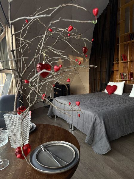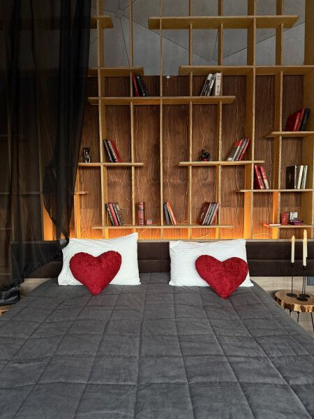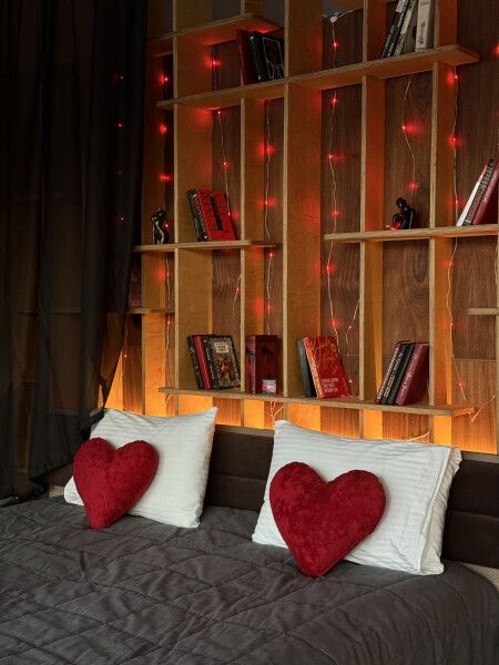 Романтика в каждой детали: Дизайнерское эргономичное тантра-кресло, мерцание свечей, тематическая библиотека для влюбленных, бокалы для шампанского, ведёрко для льда, настольные игры для пар – все продумано для создания атмосферы уединения и страсти.