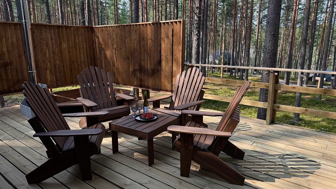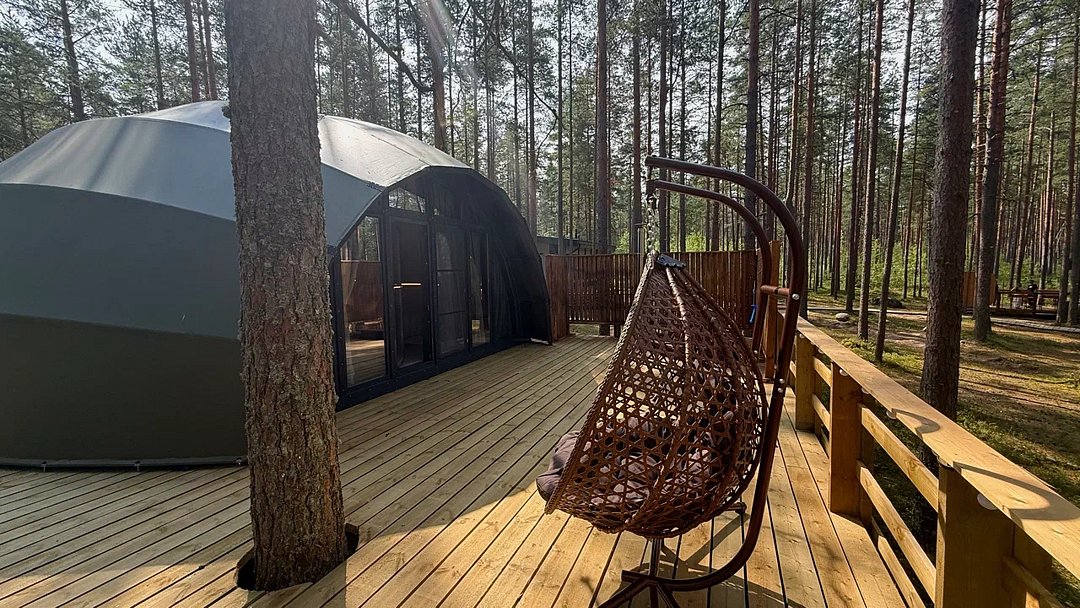 Семейный отдыхДостоинстваЭто место впечатлило нас гораздо больше, чем другие глэмпинги, которые мы посещали ранее. Все здесь совершенно новое и безупречно чистое. Кафе порадовало нас великолепной едой, несколько раз приходили поужинать. Завтраки тоже были превосходными. Рядом есть небольшое озеро. Лес вокруг - как с картинки, очень много ягод и для прогулок раздолье)) Мы обязательно вернемся сюда снова, на 100%. 🌲🍓