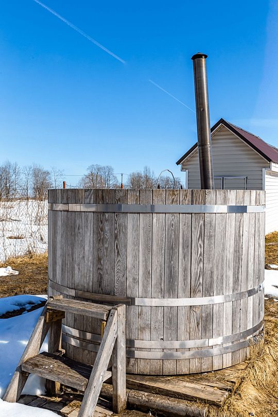 Откройте для себя древнюю японскую баню! Погрузитесь в деревянную купель с водой, нагретой до 50°C. Одна зона для отдыха, другая - для тепла. Испытайте блаженство японских традиций!