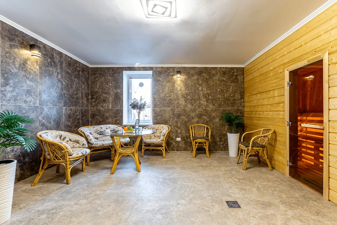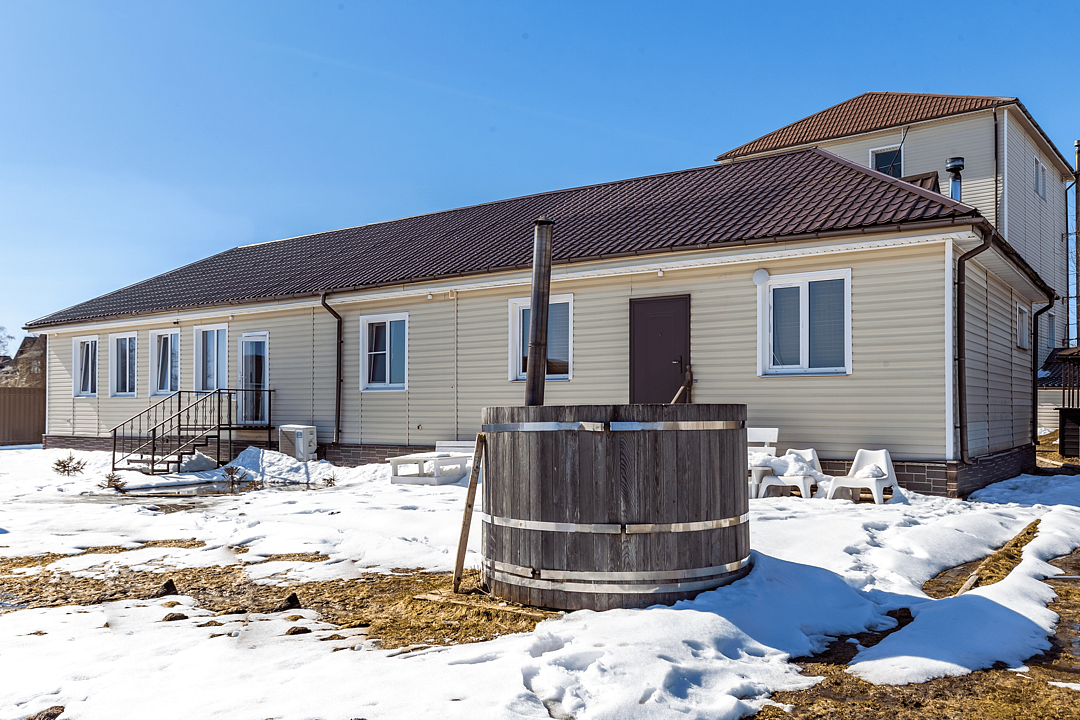 Гостям, остановившимся в доме М4, предлагается посещение русской бани, которая отлично расслабит и снимет усталость. А на открытом воздухе вас ждет небольшой бассейн и бочка Фурако. Гости дома М12 могут посетить гималайскую сауну.