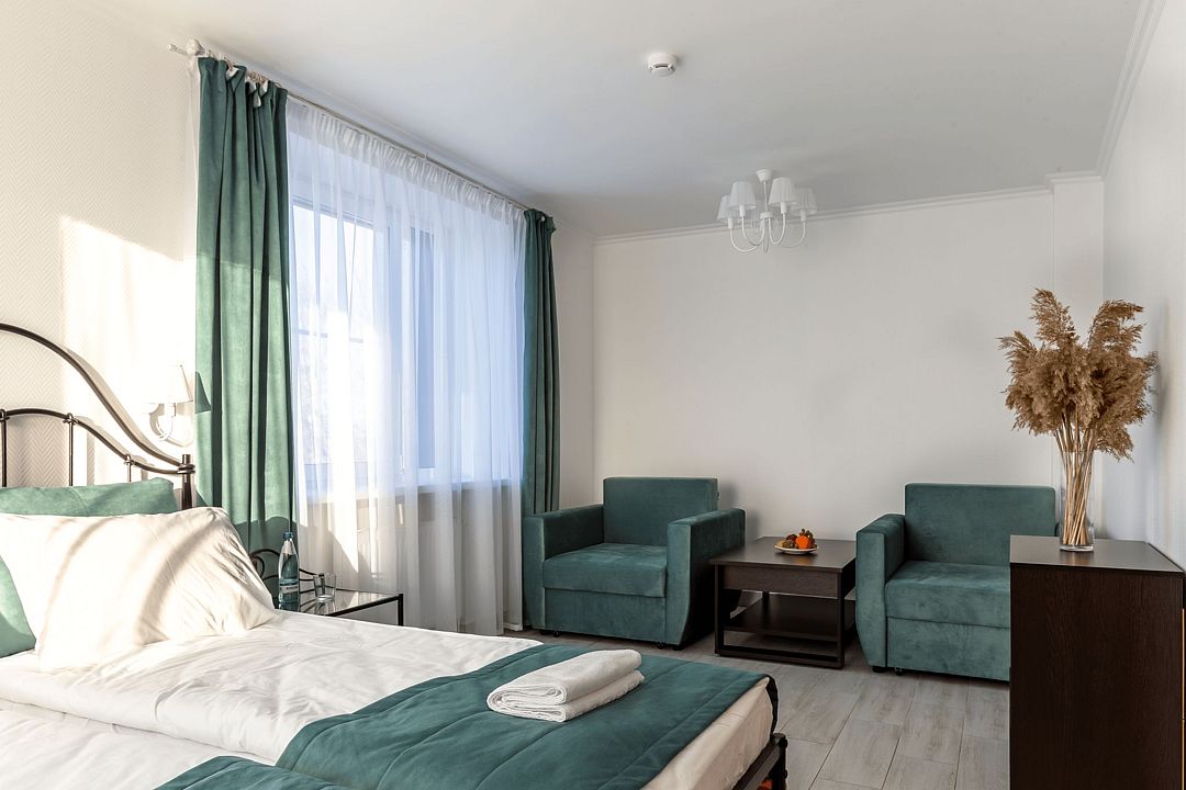 Номерной фонд состоит из двух комфортабельных коттеджей. Уютные номера пропитаны домашней атмосферой и уютом, а интерьер имеет легкие нотки элегантности. В каждом доме имеются многофункциональные залы, трансформируемые под разные мероприятия. Это отличное место для проведения бизнес-переговоров, тренингов и семинаров, которые могут сопровождаться фуршетом.