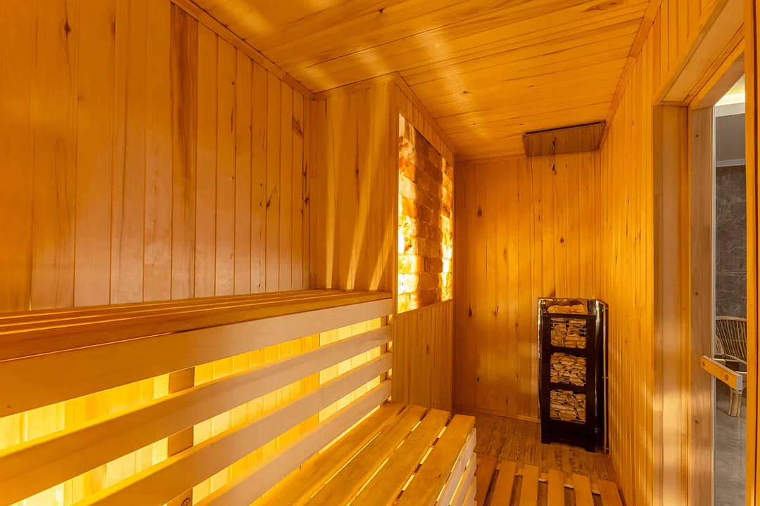 Арендуйте коттедж Мюреля 12 и получите возможность снять роскошную сауну с просторным залом для отдыха.