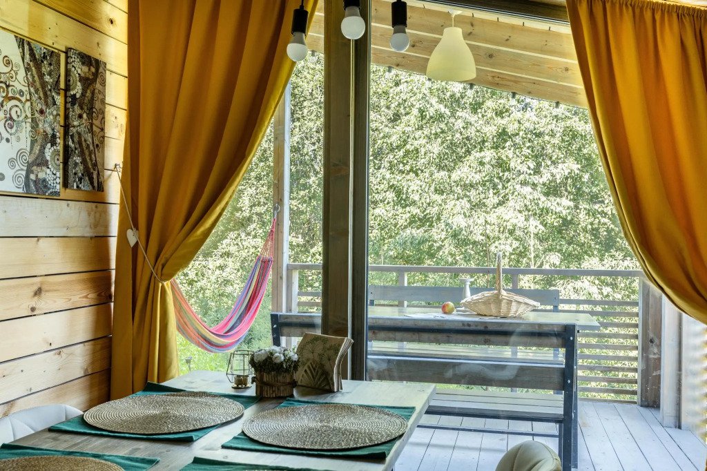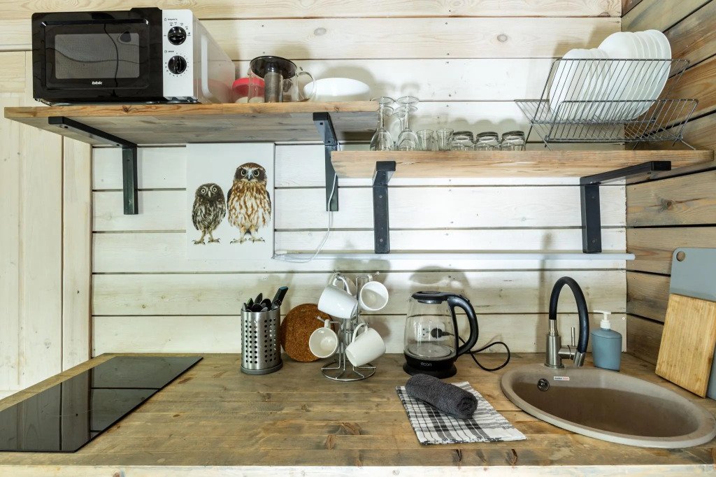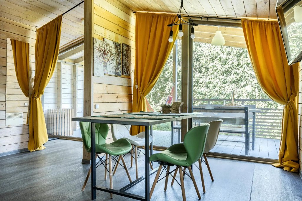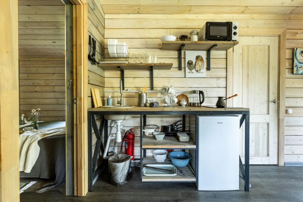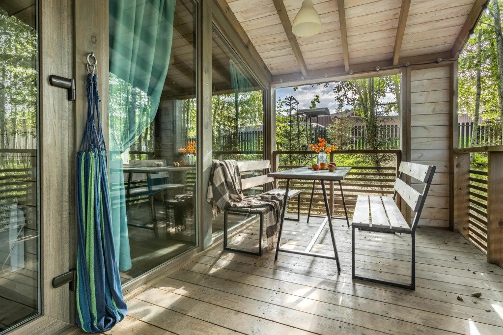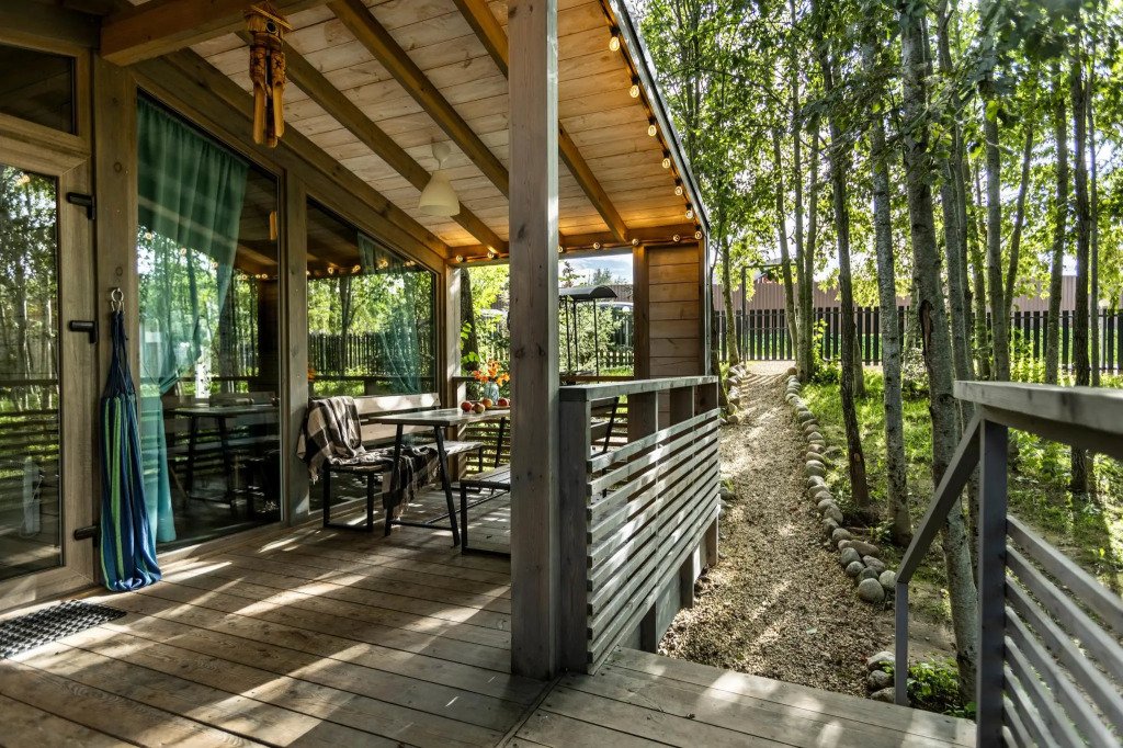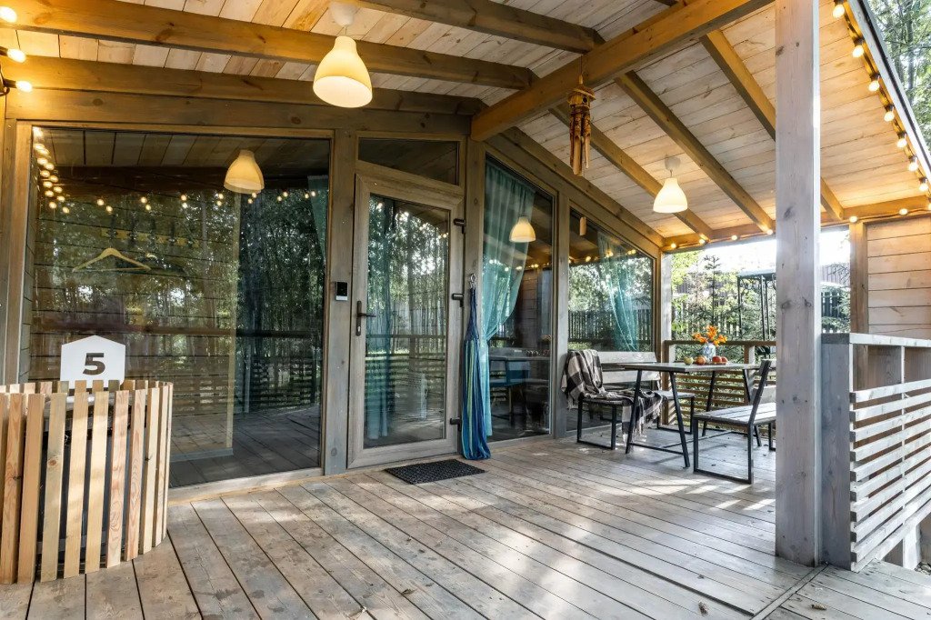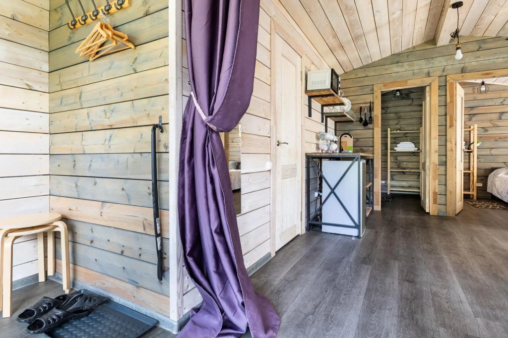 У каждого коттеджа свой мангал и терраса с уличной мебелью. Сушилки для обуви, хозяйственные принадлежности для уборки входят в стоимость.