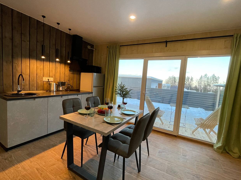 Дом рассчитан на 6 гостей. Две спальни с двухспальными кроватями и ортопедическими матрасами, гостиная с двухспальным диваном. Кухня оснащена всем необходимым. доме теплые полы. Для детей есть манеж/кровать, игрушки.