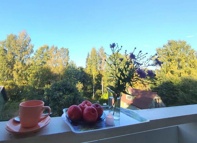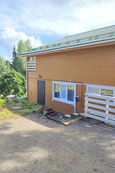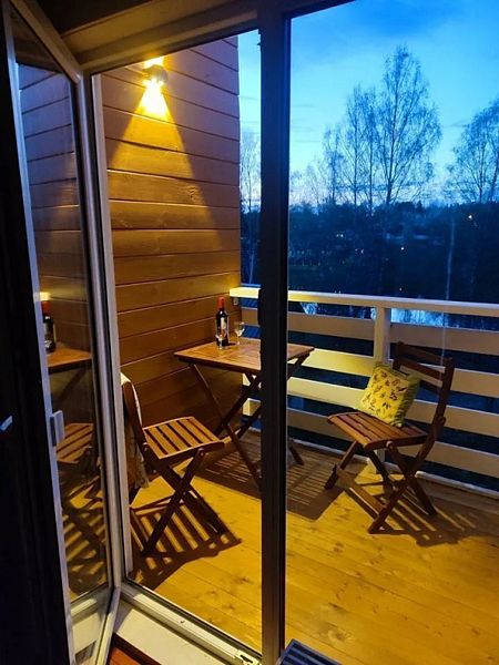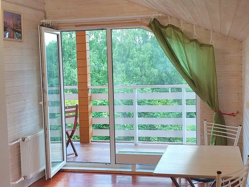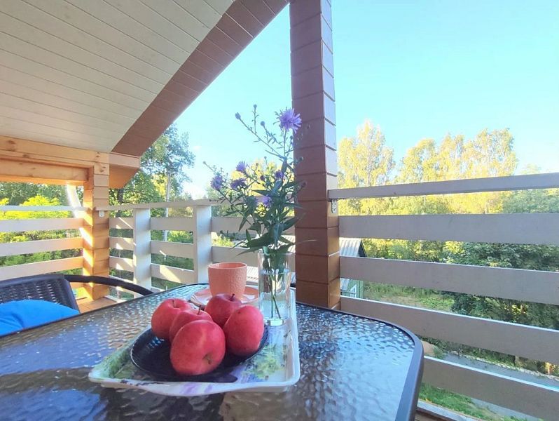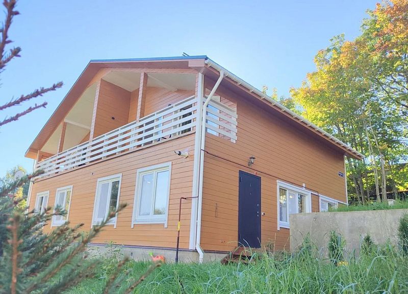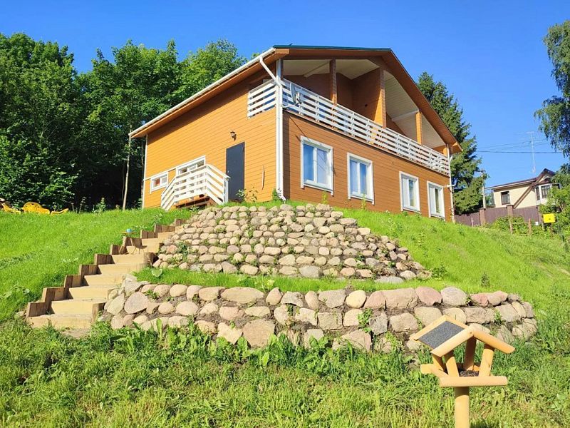 Уютный современный дом с балконом с прекрасным видом на озеро Забавное.