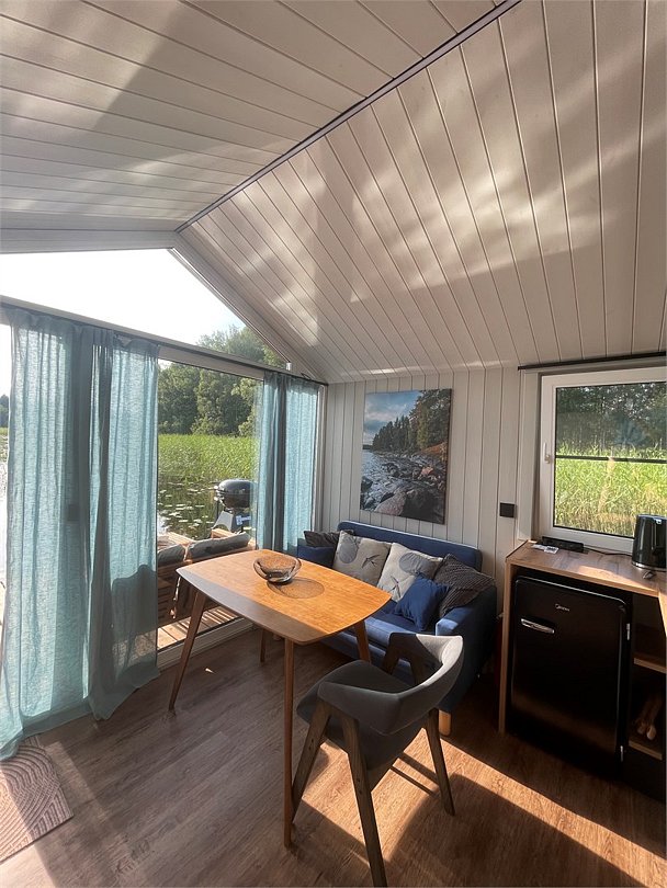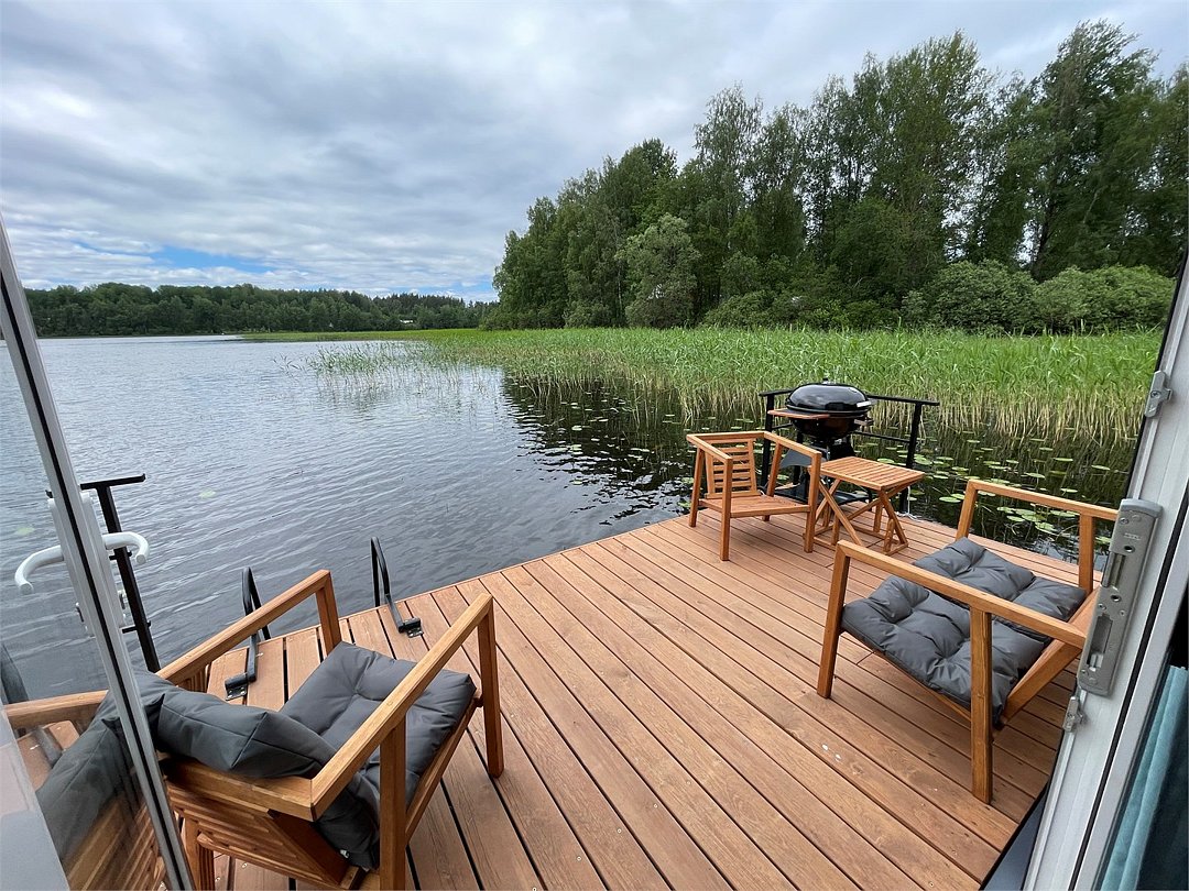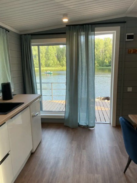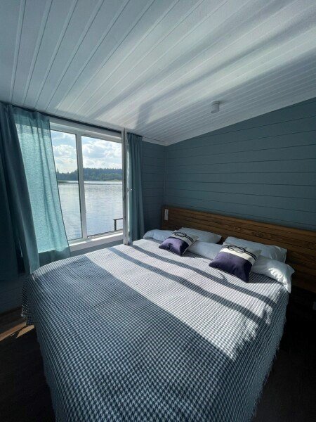 Плавучие дома оборудованы всем необходимым для комфортного проживания и отдыха. Каждый хаусбот расположен на отдельном участке водоема, обеспечивая максимальный уровень приватности и комфорта. У вас будет собственный пирс с выходом на скалистый живописный берег реки.