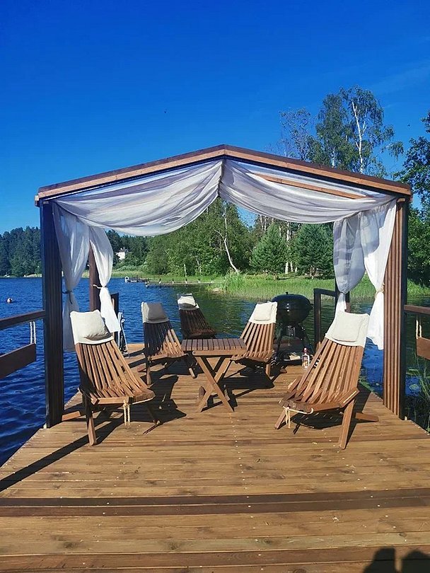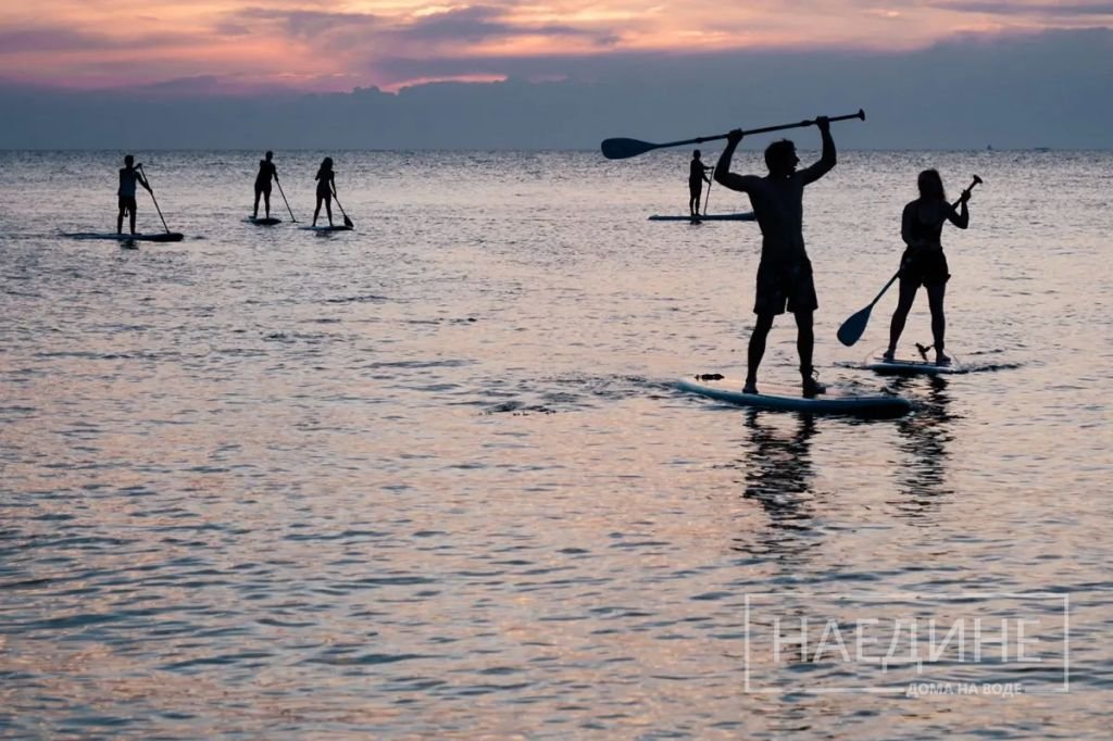 Для интересного достуга доступна баня на воде, прогулки на сап-бордах, катере, рыбалка, гриль-вечера, возможность наслаждаться закатами прямо с террасы и многое другое.