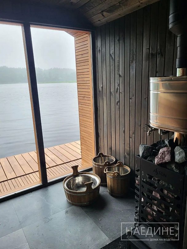 Инфраструктура: обливное ведроРасположение: выход к рекеМинимальное время аренды: 2 часаПлавучая баня — это уникальная возможность по карельским водам. Баня на понтонах - образец классической русской бани в сочетании с современными комфортными условиями. Прекрасная парная, душевая кабина, зона отдыха для компании. Вы сможете с наслаждением окунуться в воды сразу после посещения парной с двумя видами пара. На открытой площадке предоставляются удобные кресла для отдыха.